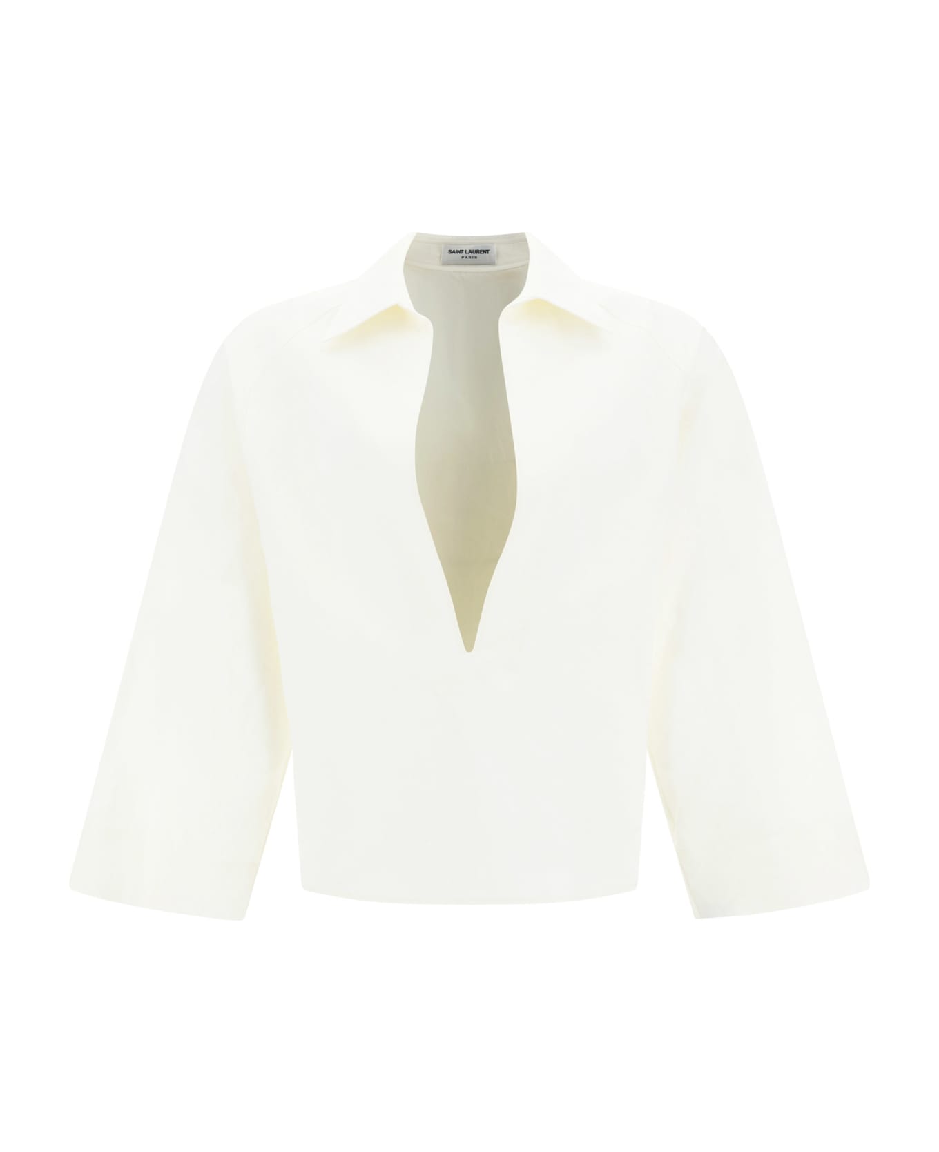 Cotton shirt by saint laurent, classic collar, wide sleeves, deep slit neckline at front, regular fit. Composition: 50% % Cotton, 50% % Linen