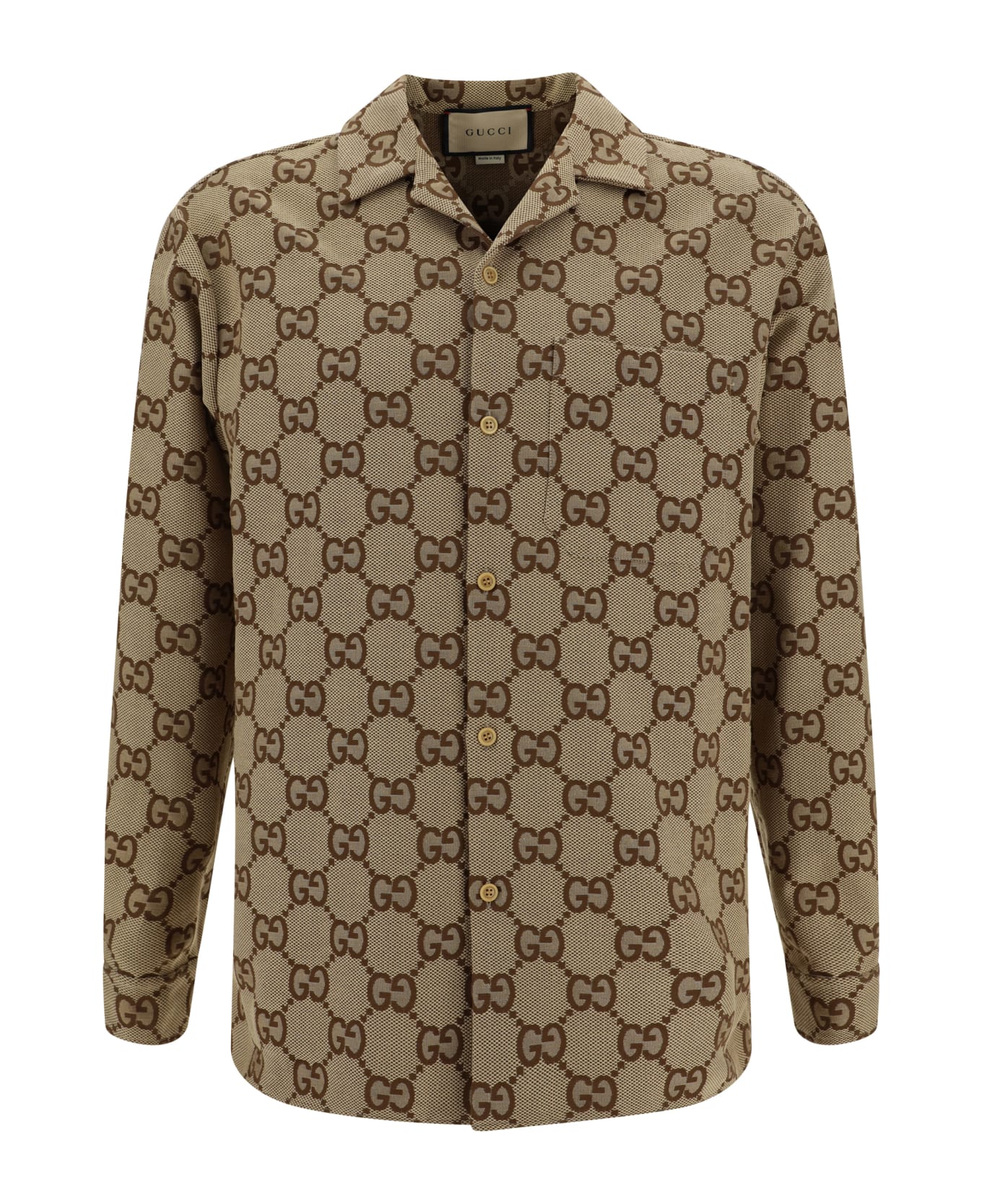 Cotton shirt by gucci, featuring a classic collar, a front button closure, a front patch pocket, adjustable button cuffs, an all-over pattern with the brand's iconic repeated logo, and a regular fit. Composition: 70% % Cotton, 30% % Polyester