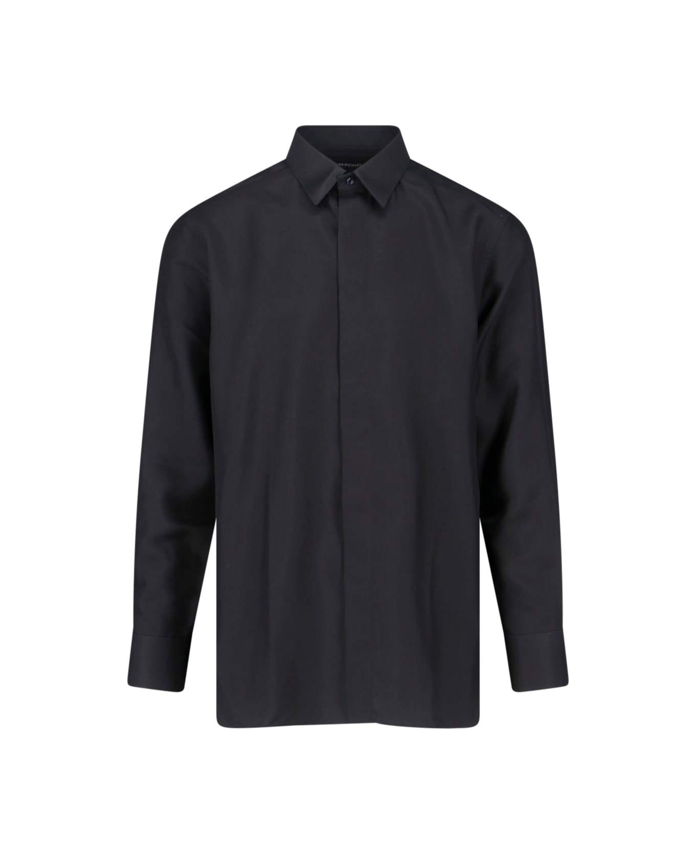 Tom Ford black silk blend shirt with collar, button fastening, long sleeves. Composition: 55% Cupro, 45% Silk