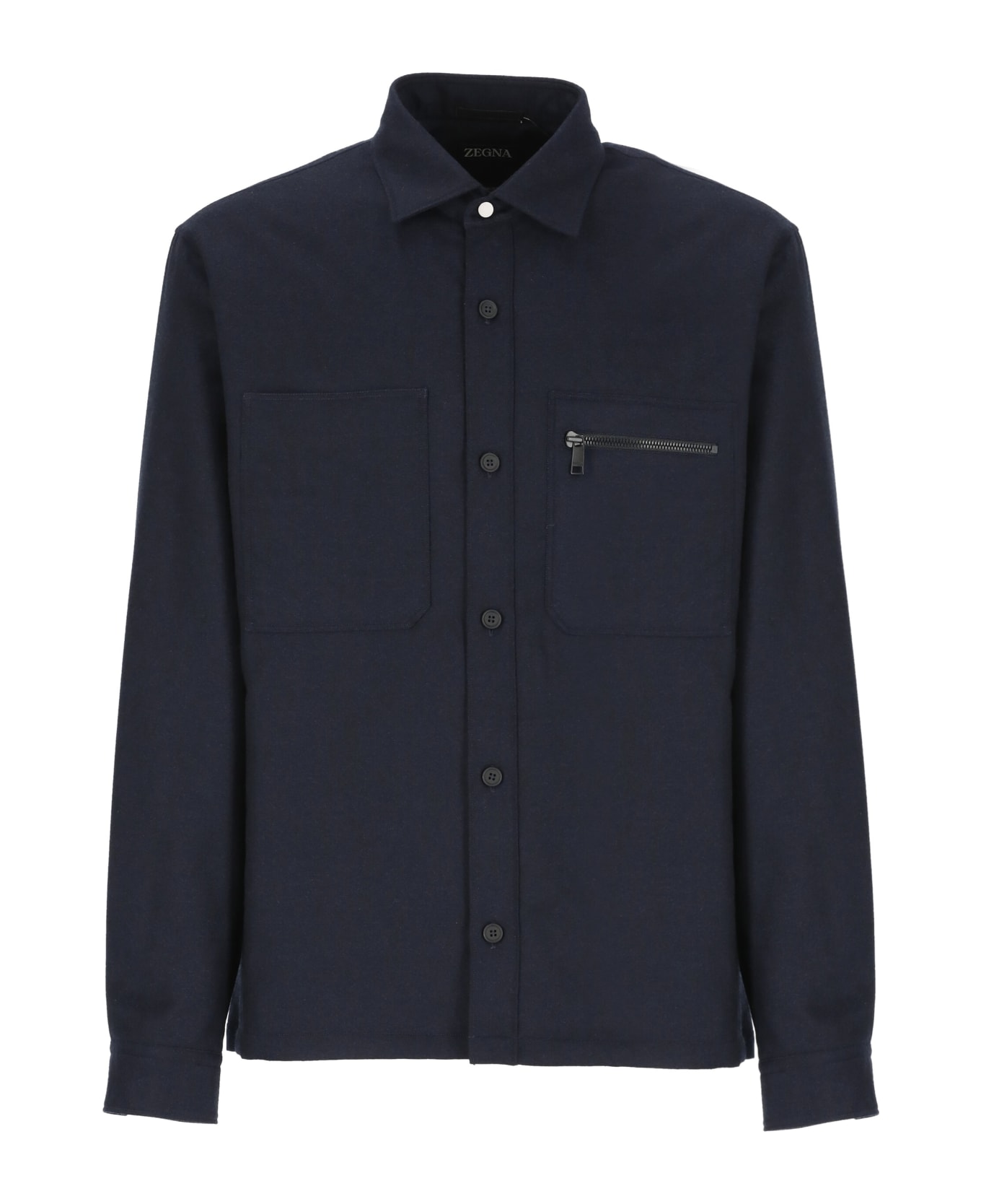 - Blu Zegna wool shirt for man - Collar - Long sleeves with button at hem - One front welt pocket - One front pocket with zip - Front buttons fastening Composition: 100% Wool Lining:, 100% Polyester