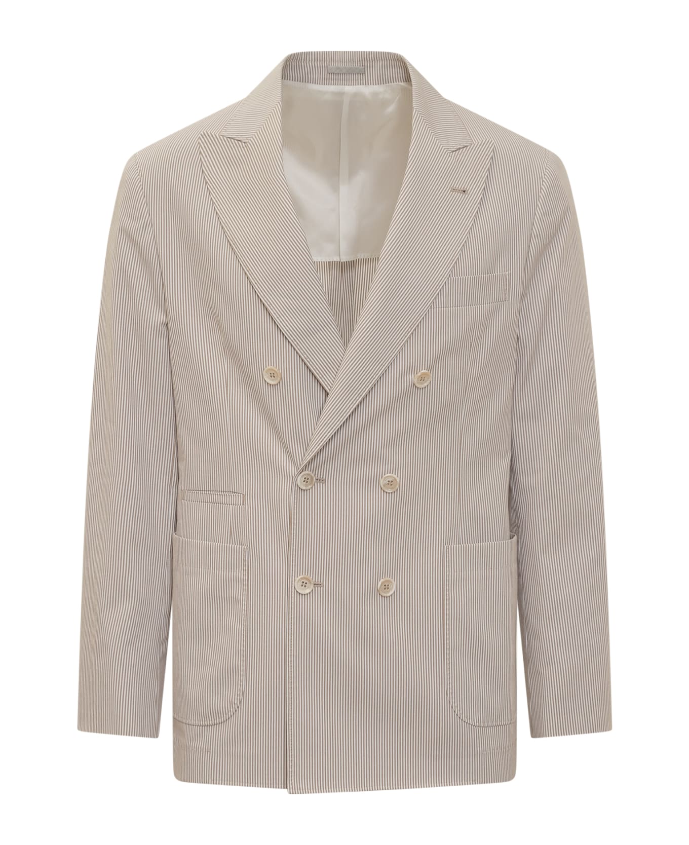 Suits with double-breasted jacket. Three side pockets and one on the chest. Button closure. Buttons on the cuffs. Slits on the back. Composition: Outside:, 98% Cotton, 2% Elastane Lining:, 100% Cupro