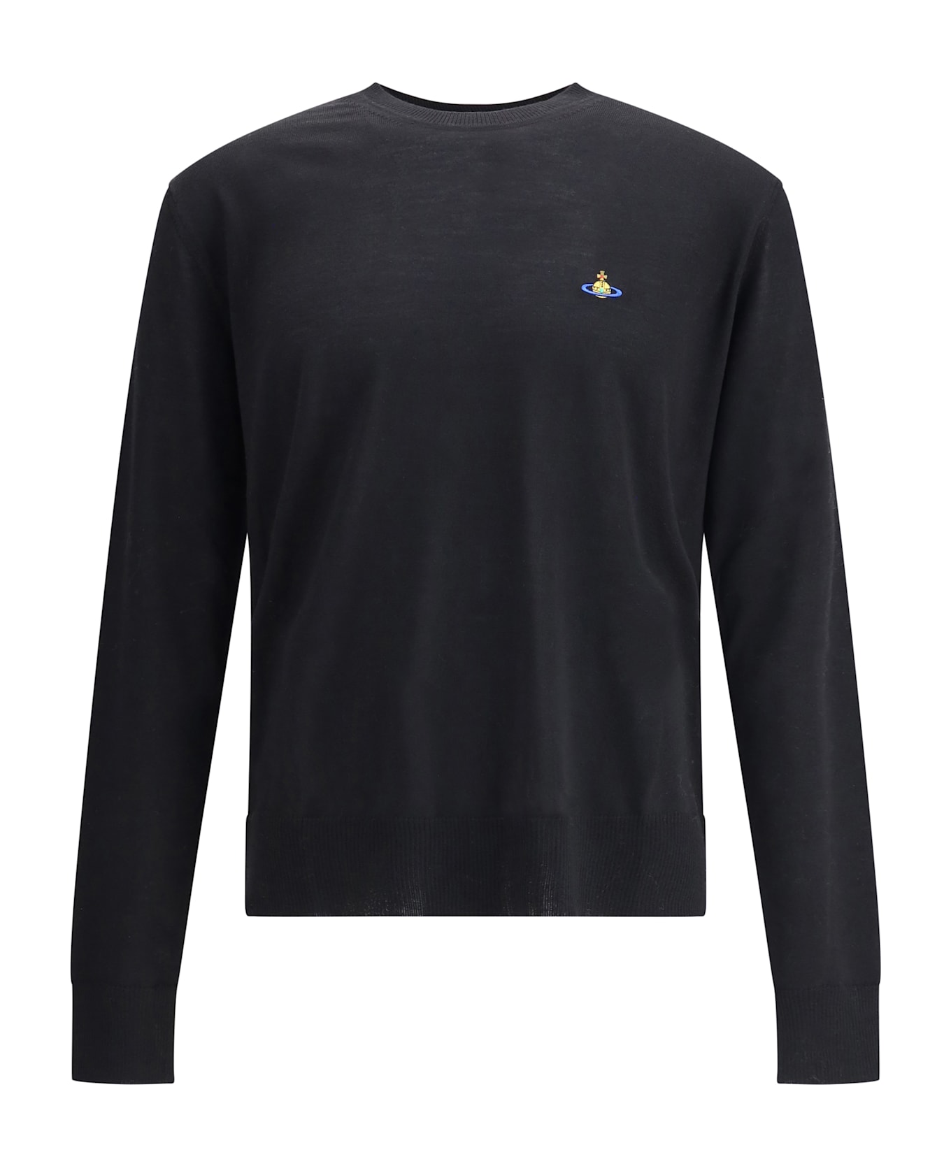 Vivienne westwood's alex wool sweater combines iconic style and everyday comfort in a statement piece. made from soft wool, it features a classic ribbed crew neck, as well as cuffs and hem, ensuring a comfortable and defined fit. the orb logo embroidered on the front signs the design with a distinctive and unmistakable touch, typical of the maison's creative vision.