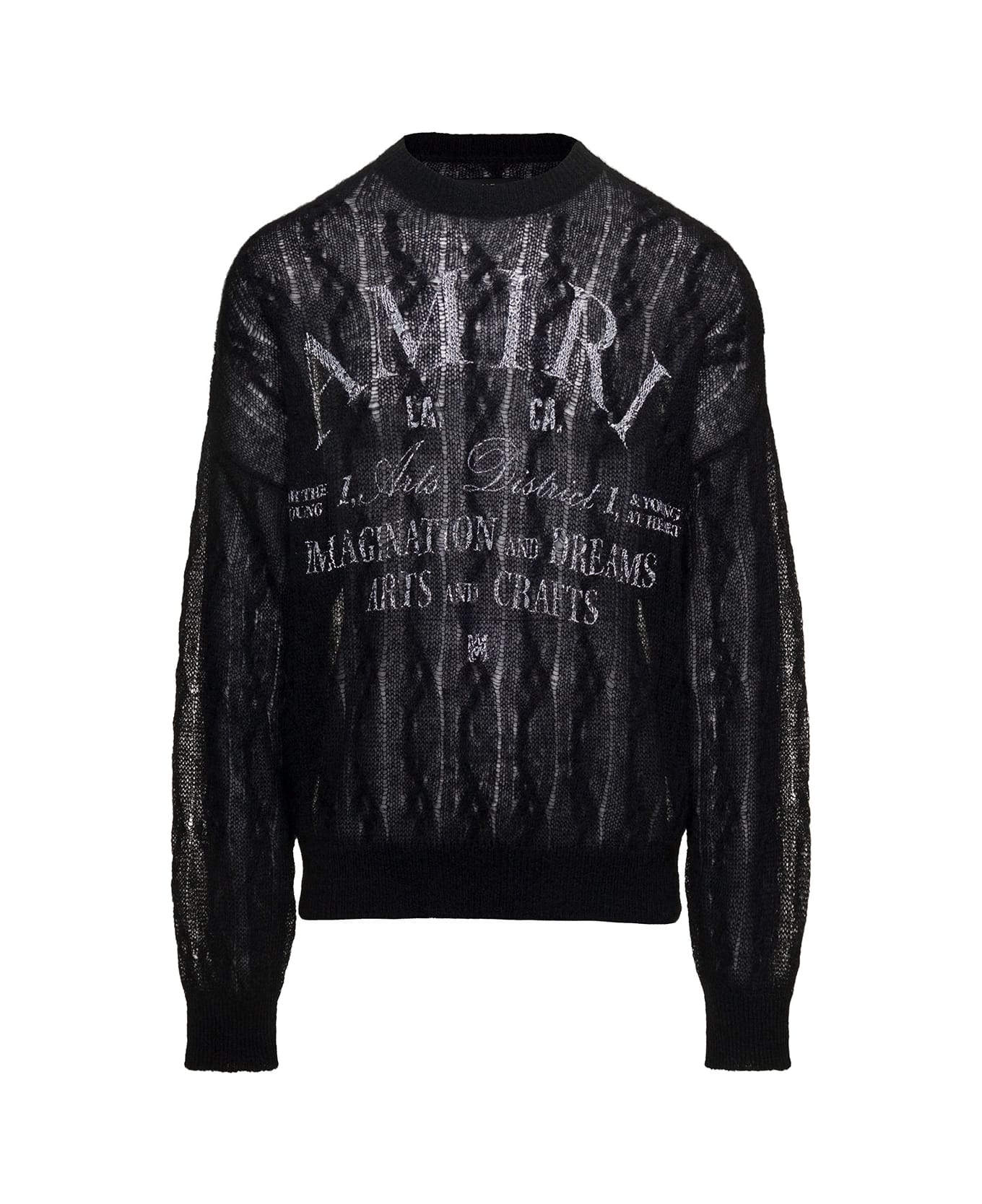 Black Semi-sheer Knit Sweater With Arts District Logo Print In Wool And Alpaca Blend Man