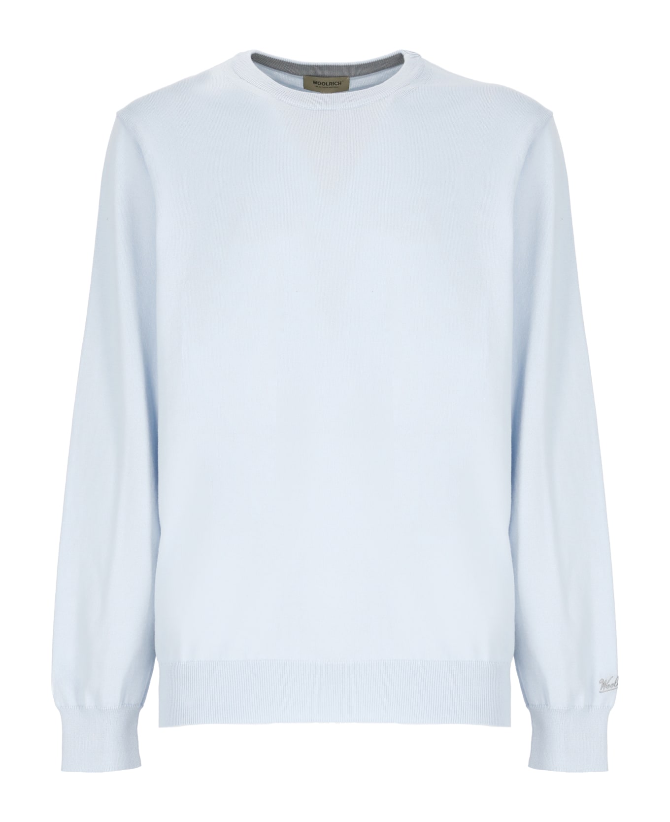 - Light blue Woolrich cotton sweater for woman - Round neck - Long sleeves - Embroidered logo at left sleeves