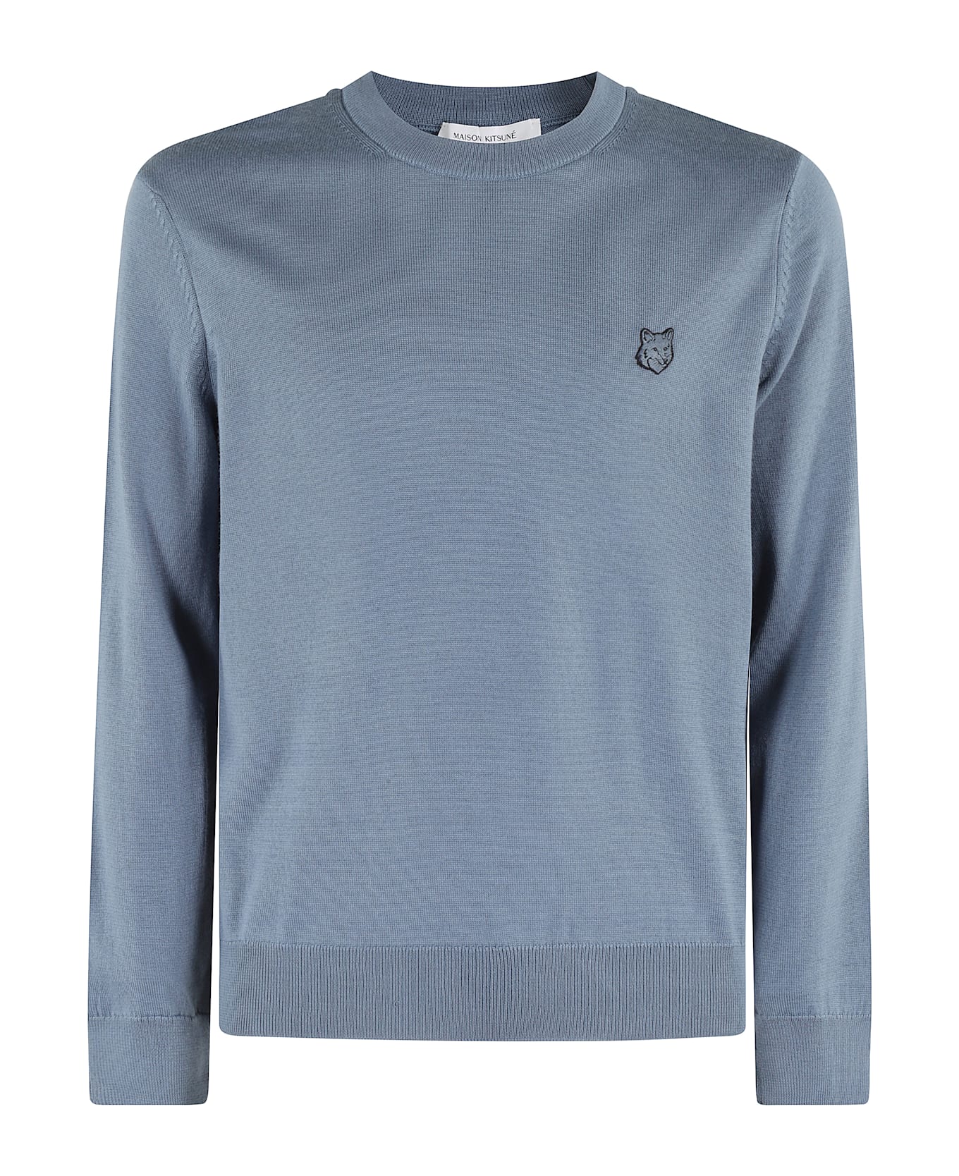 Fox Head sweater - Maison Kitsunè - Blue color - Lightweight wool fabric - Crew neck - Long sleeve - Fox Head patch applied on chest - Regular fit
