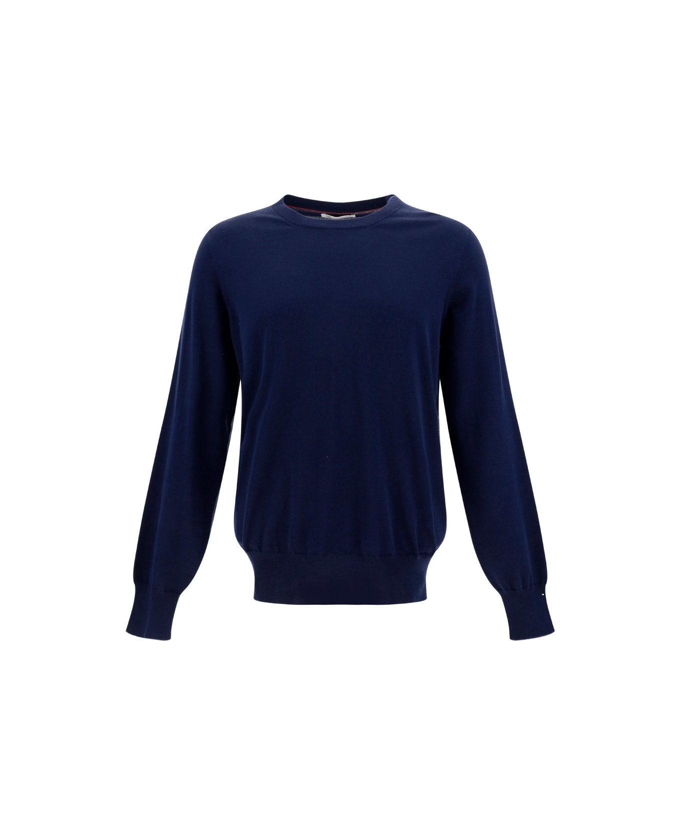 Cotton knitwear by brunello cucinelli, ribbed crew neck, ribbed cuffs, ribbed hem, slim fit.