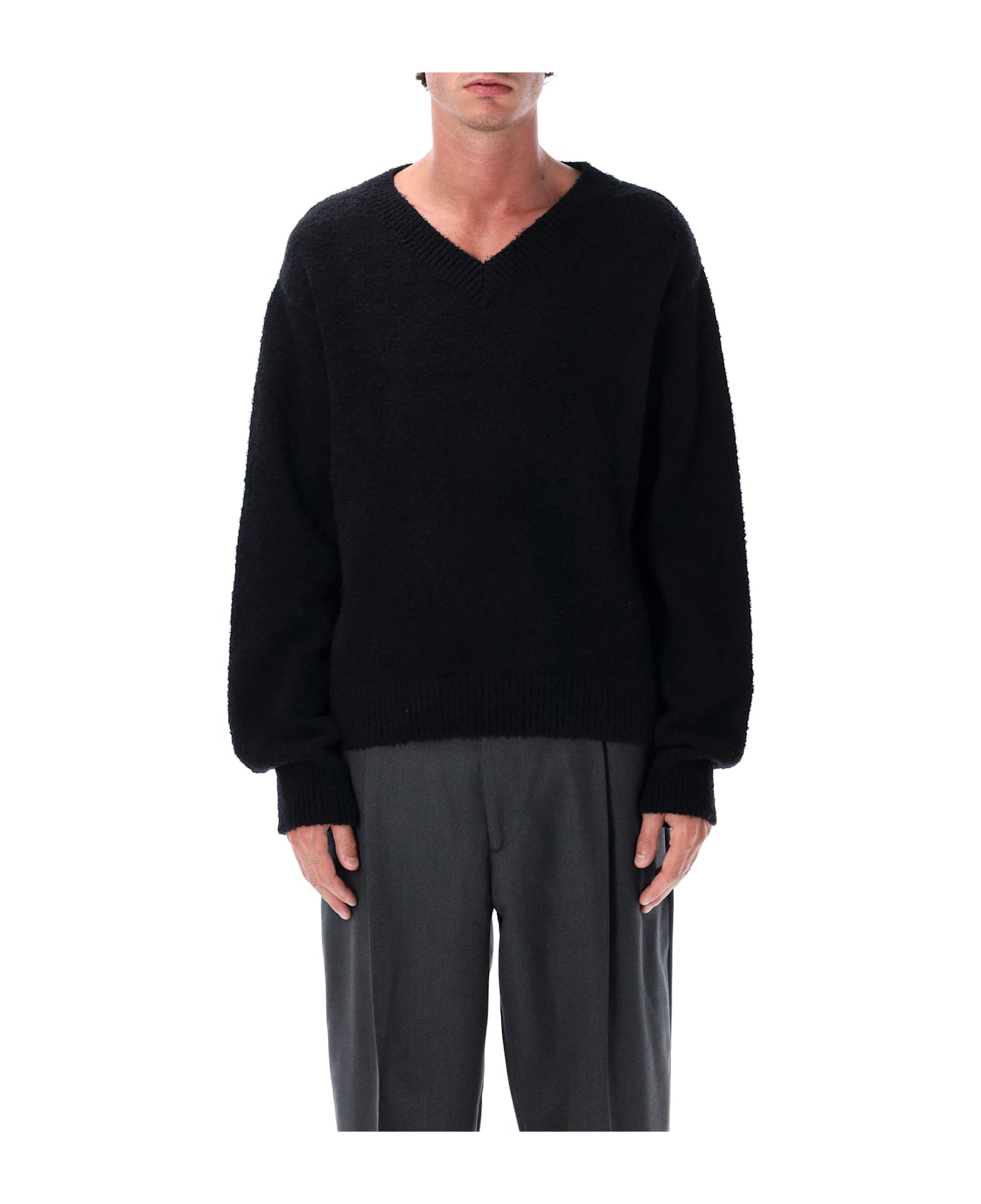 Mfpen Fuzzy Black V-neck Organic Cotton Sweater