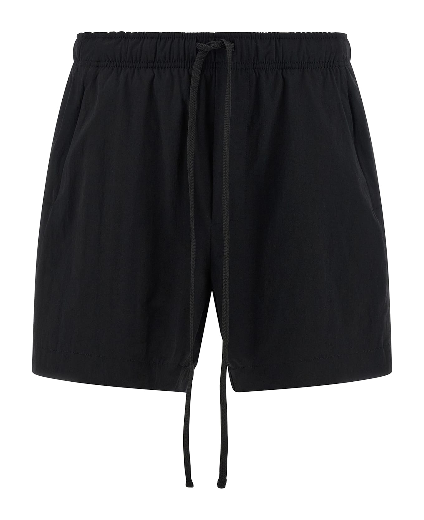 '19' swimsuit in nylon elastic Lycra blend, elastic waistband with drawstring, trompe l'oeil flap, pockets, inner mesh briefs.