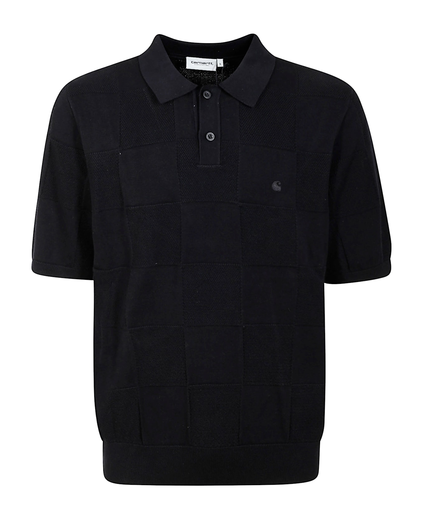 CARHARTT POLO, in lightweight cotton with allover checkered stitch. The polo also features a ribbed knit collar and half-button opening. The C logo embroidery stands out on the chest. Composition: 100% Cotton