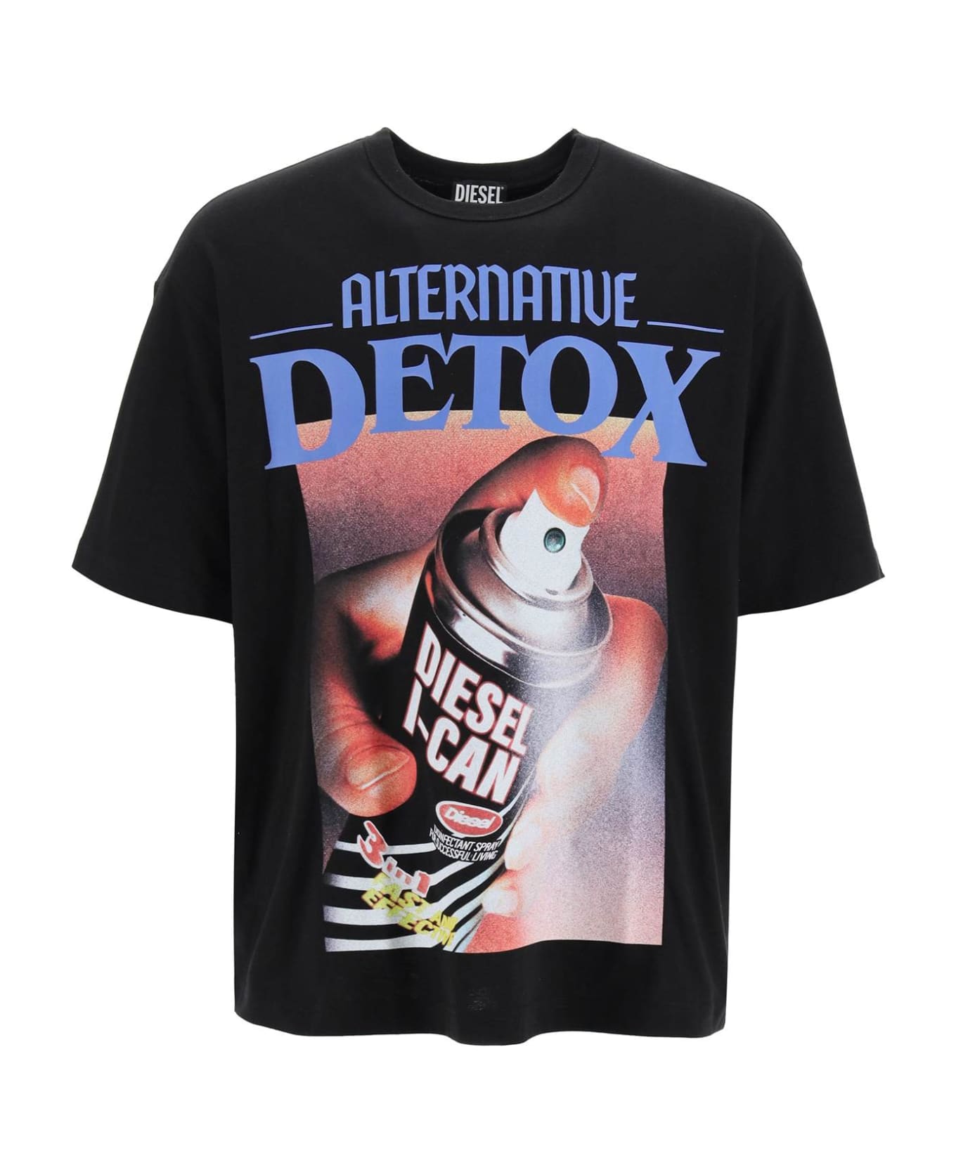 Diesel crew neck t-shirt in pure cotton jersey, embellished with 'Alternative Detox' print on the front and 'Pure Energy' print on the back. Ribbed neck, oversized fit. The model is 187 cm tall and wears a size L.