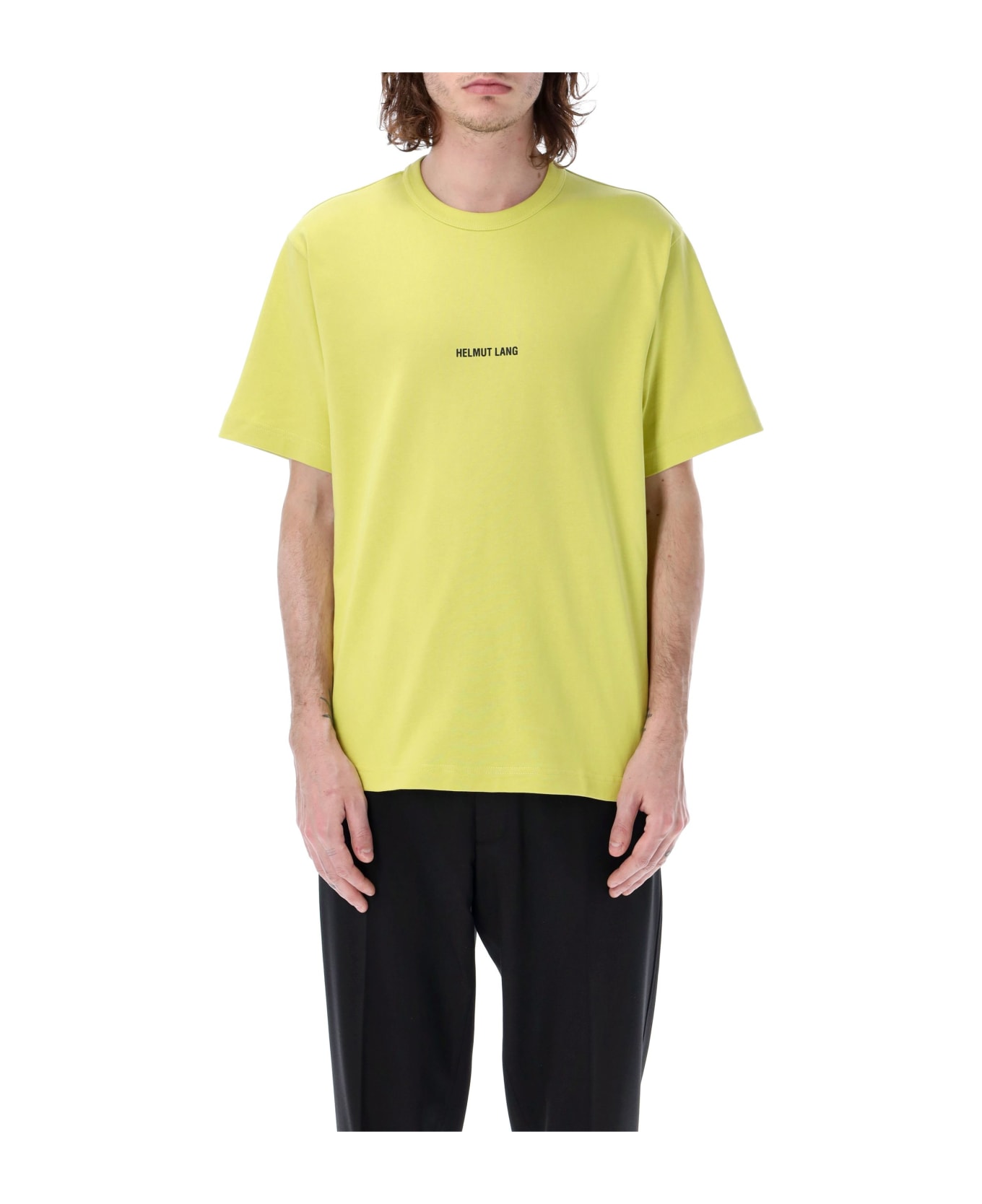 Cotton Core Tee By Helmut Lang. Featuring: Ribbed Crewneck Short Sleeves Logo Lettering Print At Front Straight Hem Model Is 1,90 M Tall And He Is Wearing Size L