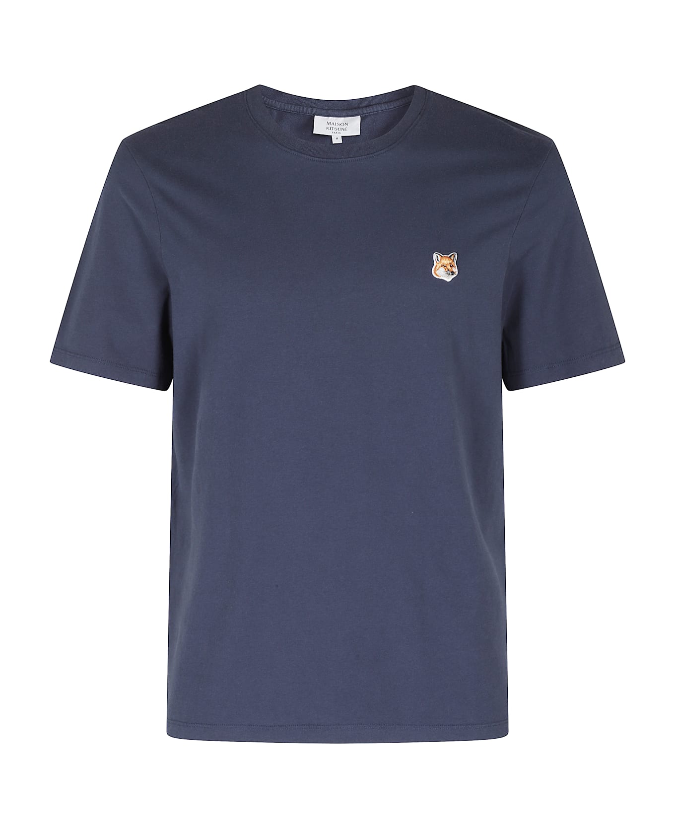 Fox Head T-Shirt - Maison Kitsunè - Ink blue color - Ribbed crew neck - Short sleeve - Fox Head logo patch applied on chest - Regular fit