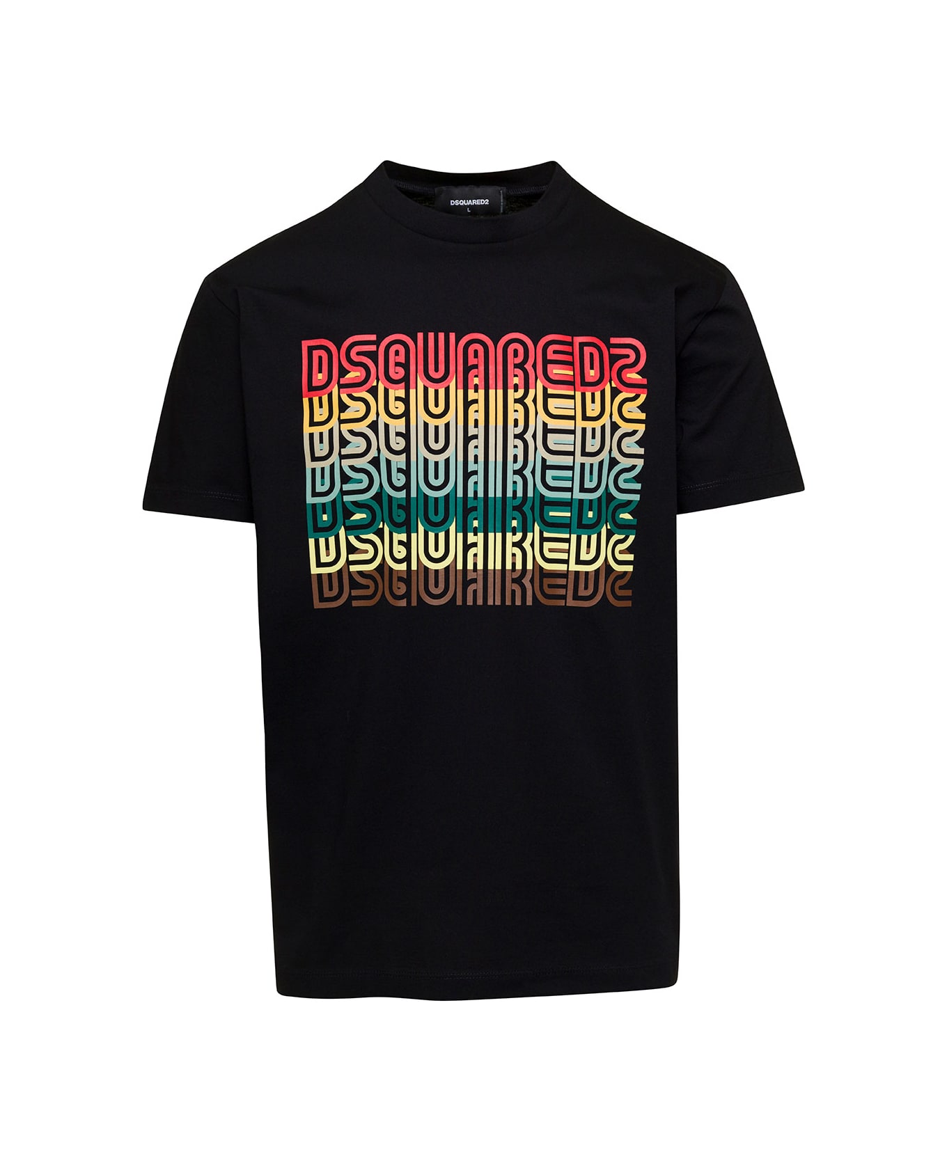 Black Crewneck T-shirt With Multicolor Logo Print In Cotton Man