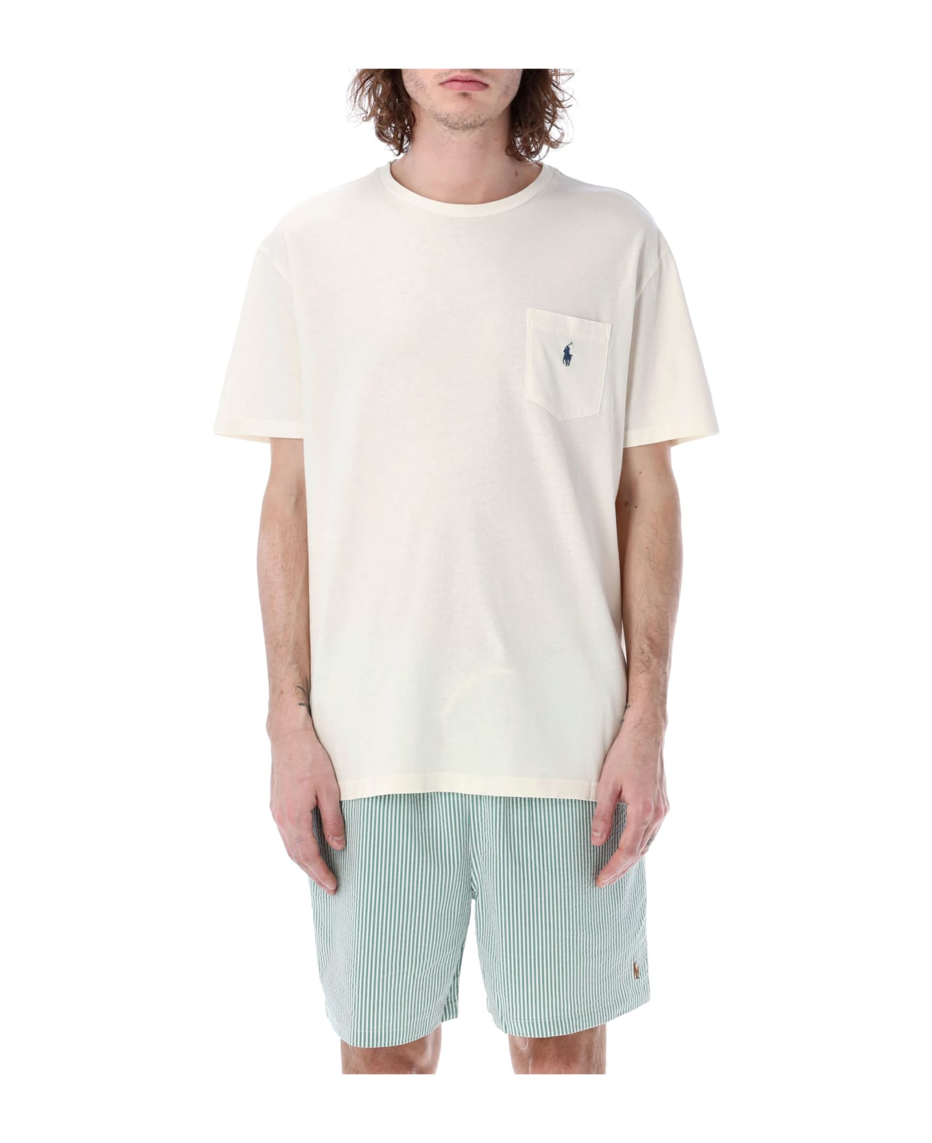 Cotton Pocket T-shirt By Polo Ralph Lauren. Featuring: Ribbed Crewneck Short Sleeves Patch Pocket With Signature Embroidery At Left Chest Staight Hem Model Is 1,90 M Tall And He Is Wearing Size L