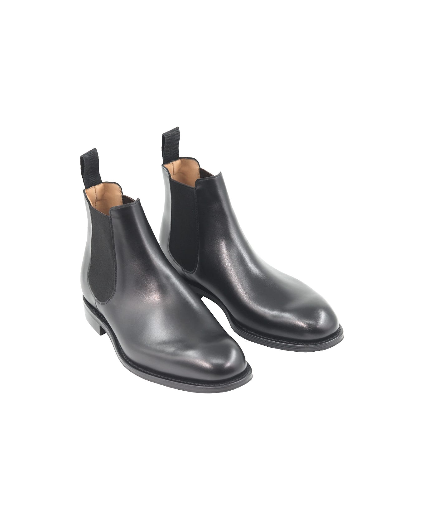 Chelsea boot with side elastic, cotton tongue on the back, non-slip rubber sole with leather heel, internal lining, Goodyear construction, Church's crest on insole and sole. Composition: Leather. Sole: Rubber, Leather.