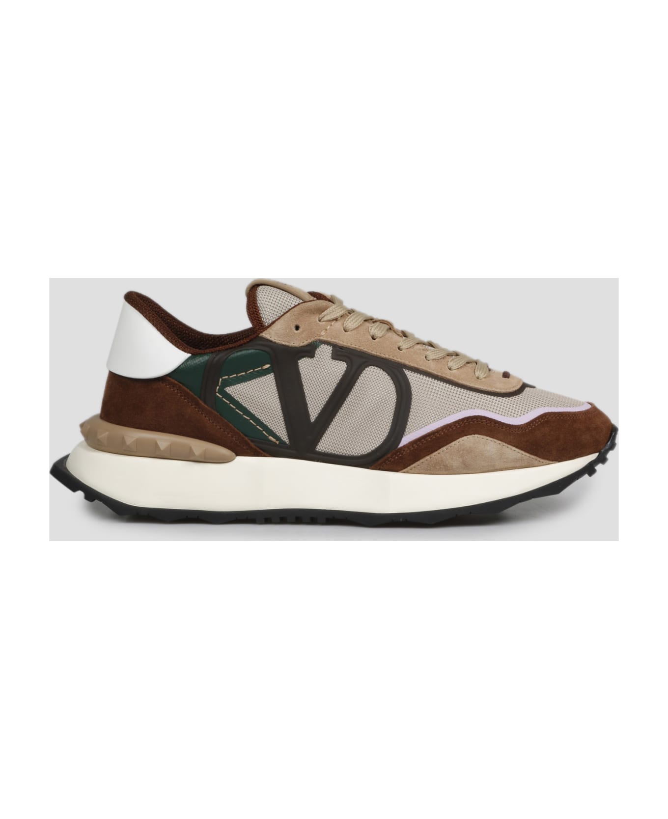Valentino Garavani Netrunner sneaker in mesh and suede. - SS23 - Round toe - Lace up - Suede logo label on the front tongue - VLogo detail on the outside - Rubber studs insert on the heel - Midsole with embossed Valentino Garavani logo - Made in Italy - Fabric