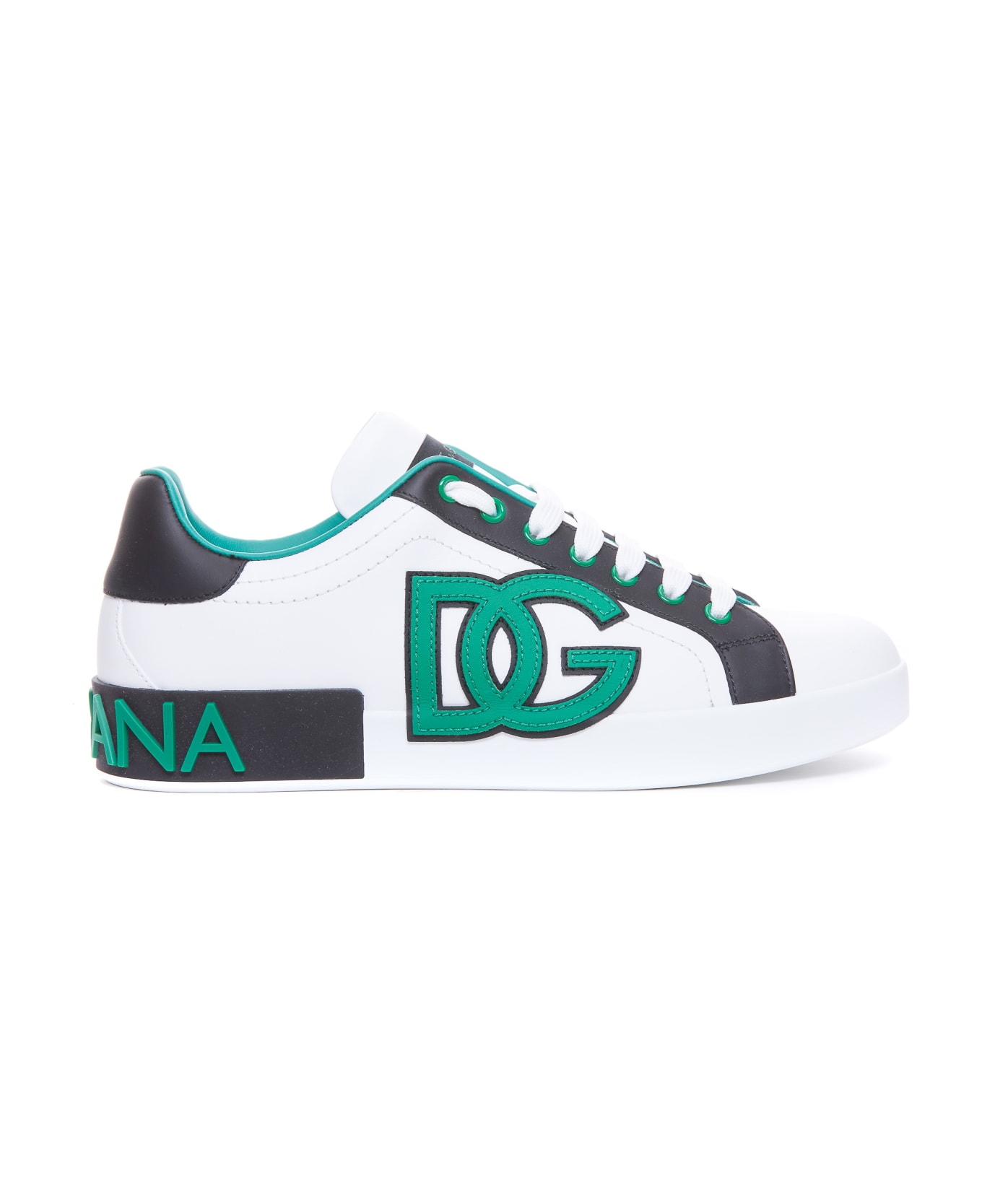 Dolce&Gabbana Portofino white sneakers, round toe, logo on side and on back, lace closure, leather upper, rubber sole Composition: 100% Leather, Rubber Sole