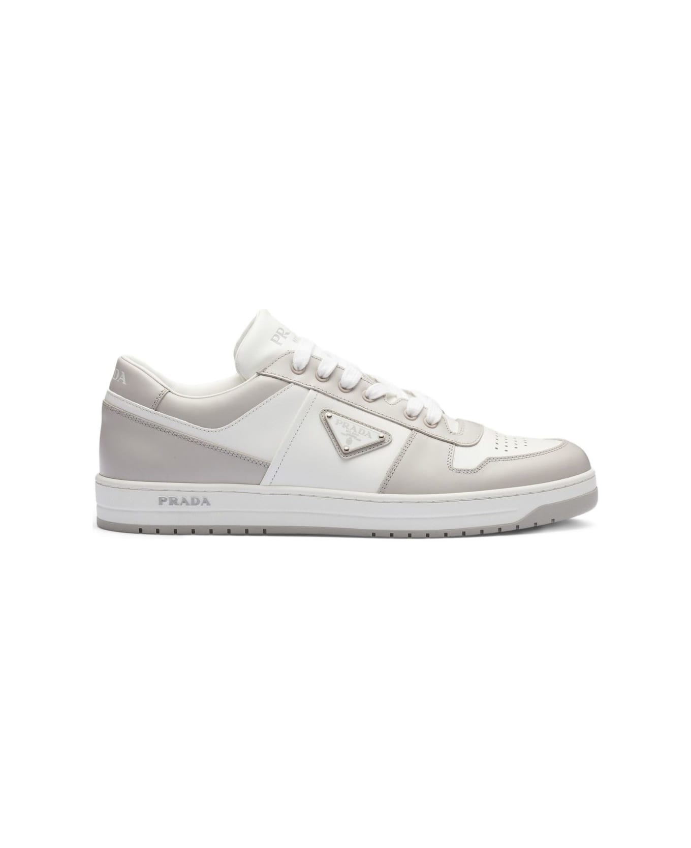 Our team selected this model for its high stylistic content and subtle impact. Prada Downtown Sneakers with Inserts Features White Tonal Inserts Lace-up closure Logo detail Perforated details Rubber sole Composition: 100% Calf