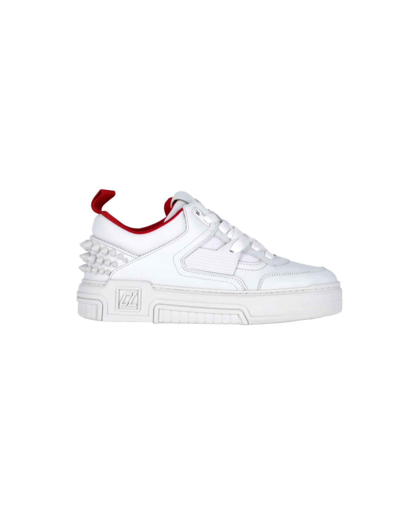Sneakers "Astrolubi" Christian Louboutin in white calfskin, round toe, lace-up closure, tone-on-tone "Spikes" details on the back, back pull tab, rubber sole. Composition: 97. , 3% Calfskin, 2. , 7% Goat Leather
