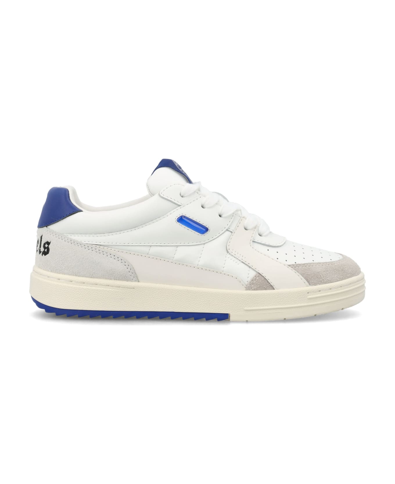 Leather University Sneakers By Palm Angels. Featuring: Low-top Lace-up Fastening Colourful Details Padded Tongue And Collar Suede Detail At Toe And Heel Perforations Rubber Sole With Colourful Detail Palm Tree And Logo Lettering At Back
