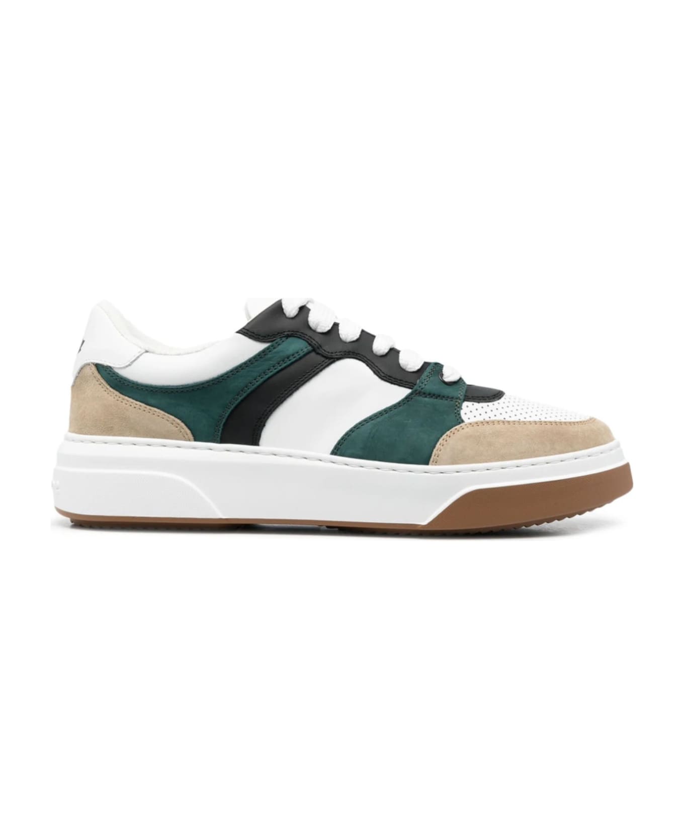 White and green leather sneakers, round toe, front lace-up fastening, logo patch at the tongue, branded heel counter, branded insole, flat sole Composition: Leather, 100%
