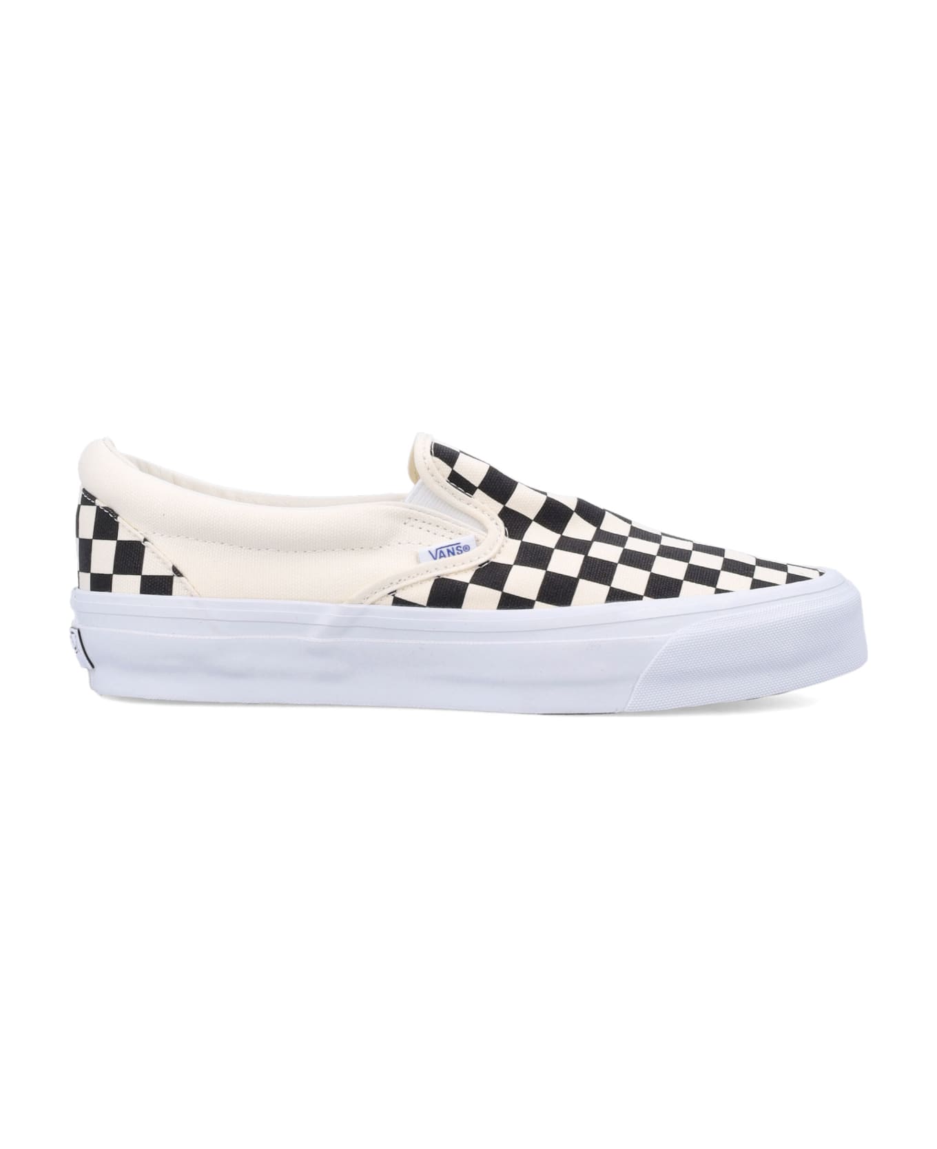 The Vans Checkerboard Lx Classic Slip-on 98 In Black And White Canvas Combines Iconic Skate Heritage With Modern Slip-on Convenience. Featuring A Checkerboard Motif And Elastic Side Panels, These Low-cut Sneakers Provide A Secure, Comfortable Fit While Highlighting Timeless Style. Checkerboard Canvas Upper With Leather Collar Lining