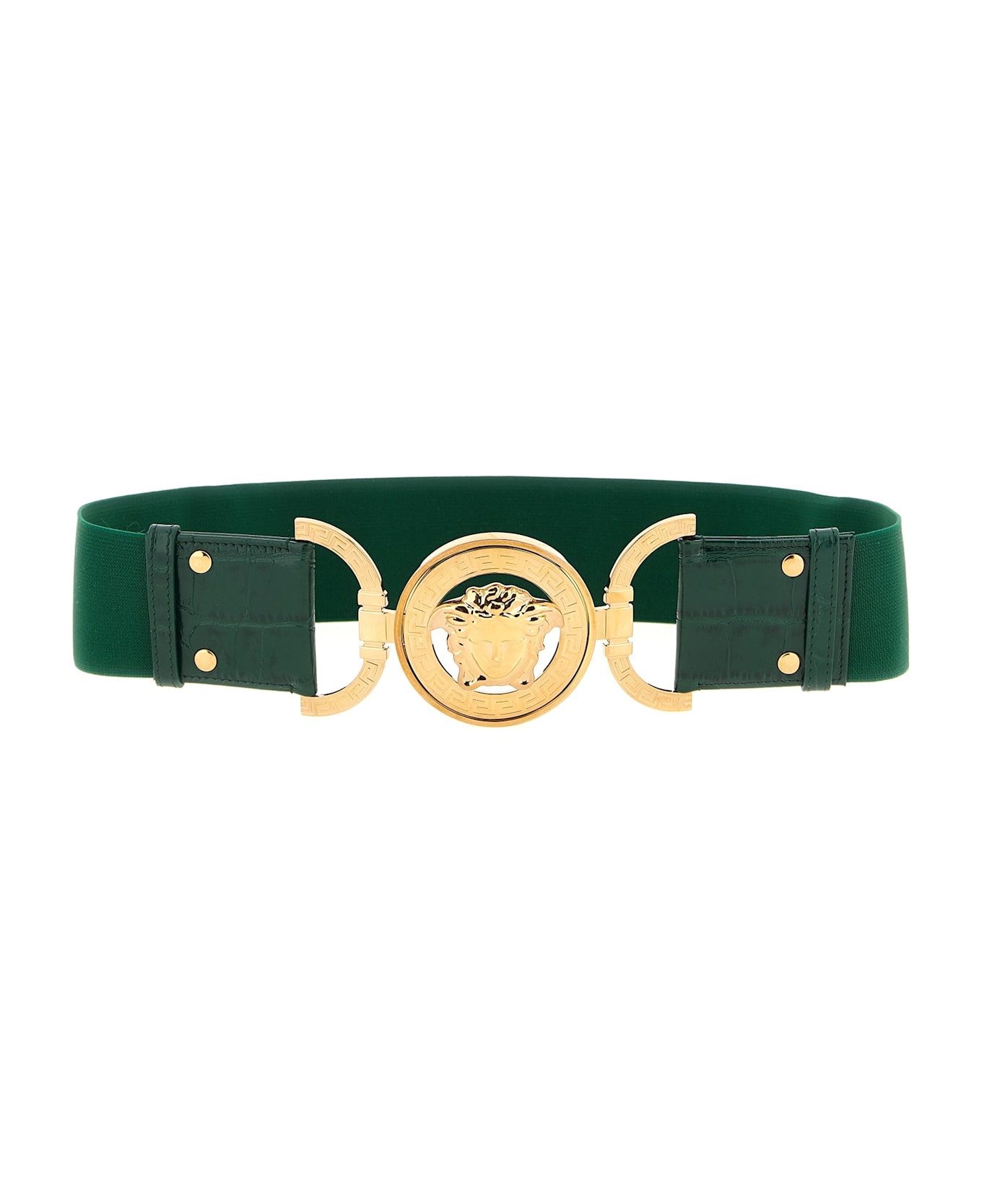 Elastic belt with tone-on-tone coconut-effect calf leather details and 'Medusa '95' snap metal buckle. Composition: 100% calfskin leather (Bos Taurus)