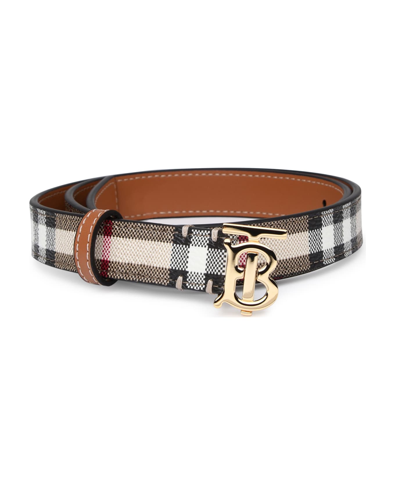 Reversible belt with Burberry Check pattern on one side and plain leather with stitching on the other, metal monogrammed logo buckle, and mushroom-shaped clasp \ 2 cm Composition: 71% polyurethane, 16% polyester, 12% cotton, 1% acrylic