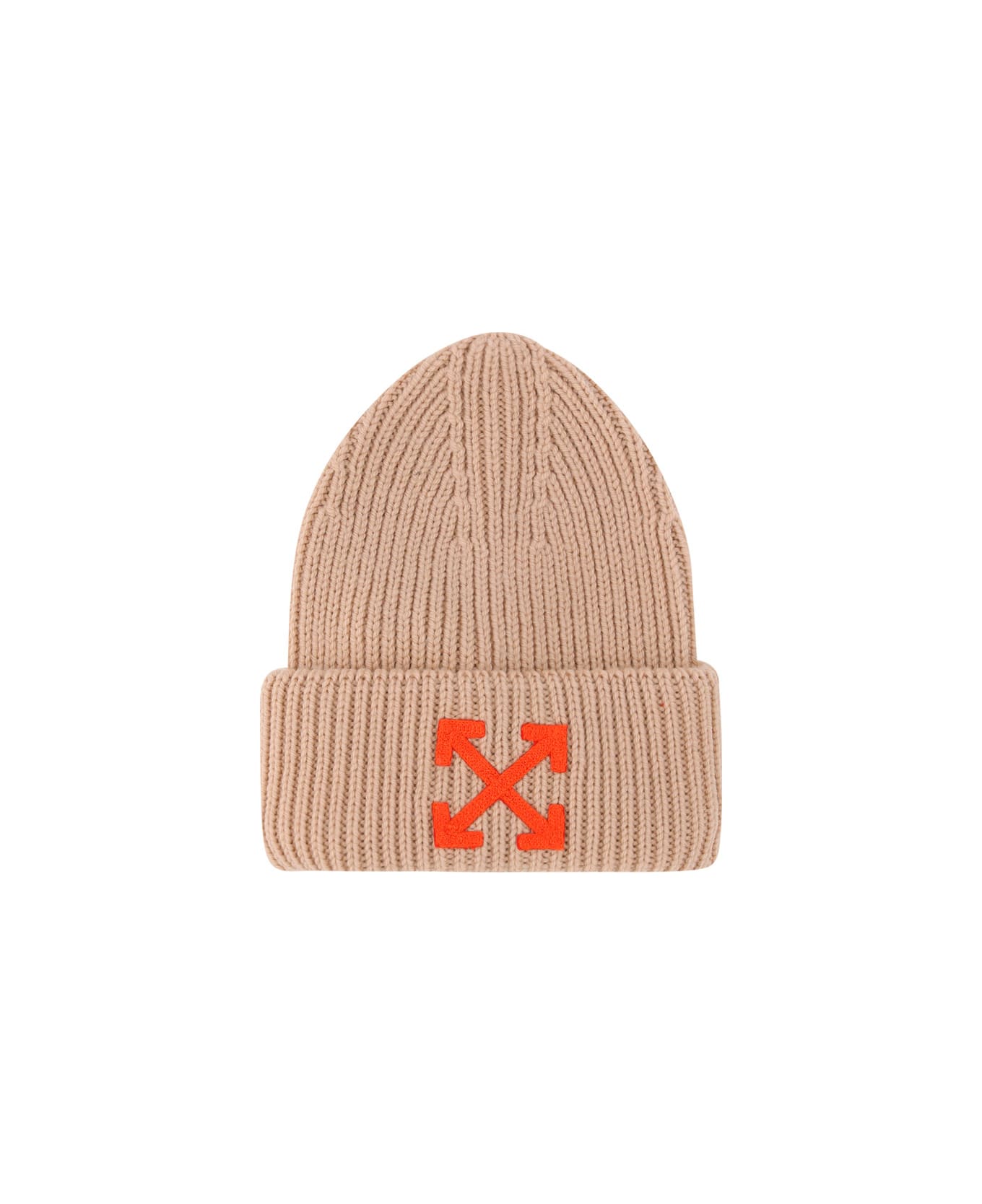 Wool arrow beanie hat by off-white, all-over ribbed design, brand's iconic arrow logo embroidered in contrast on front flap.