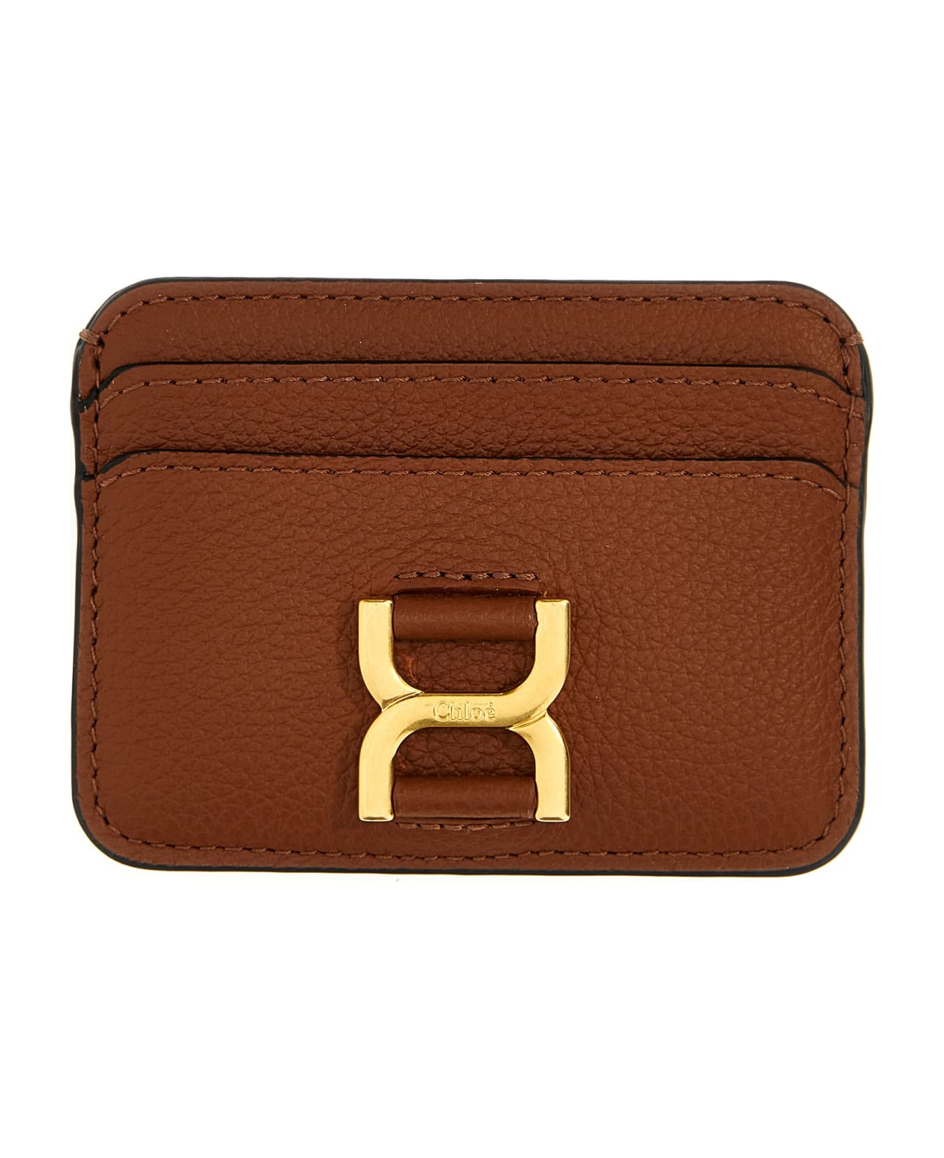 Leather wallet with metal chain detail.