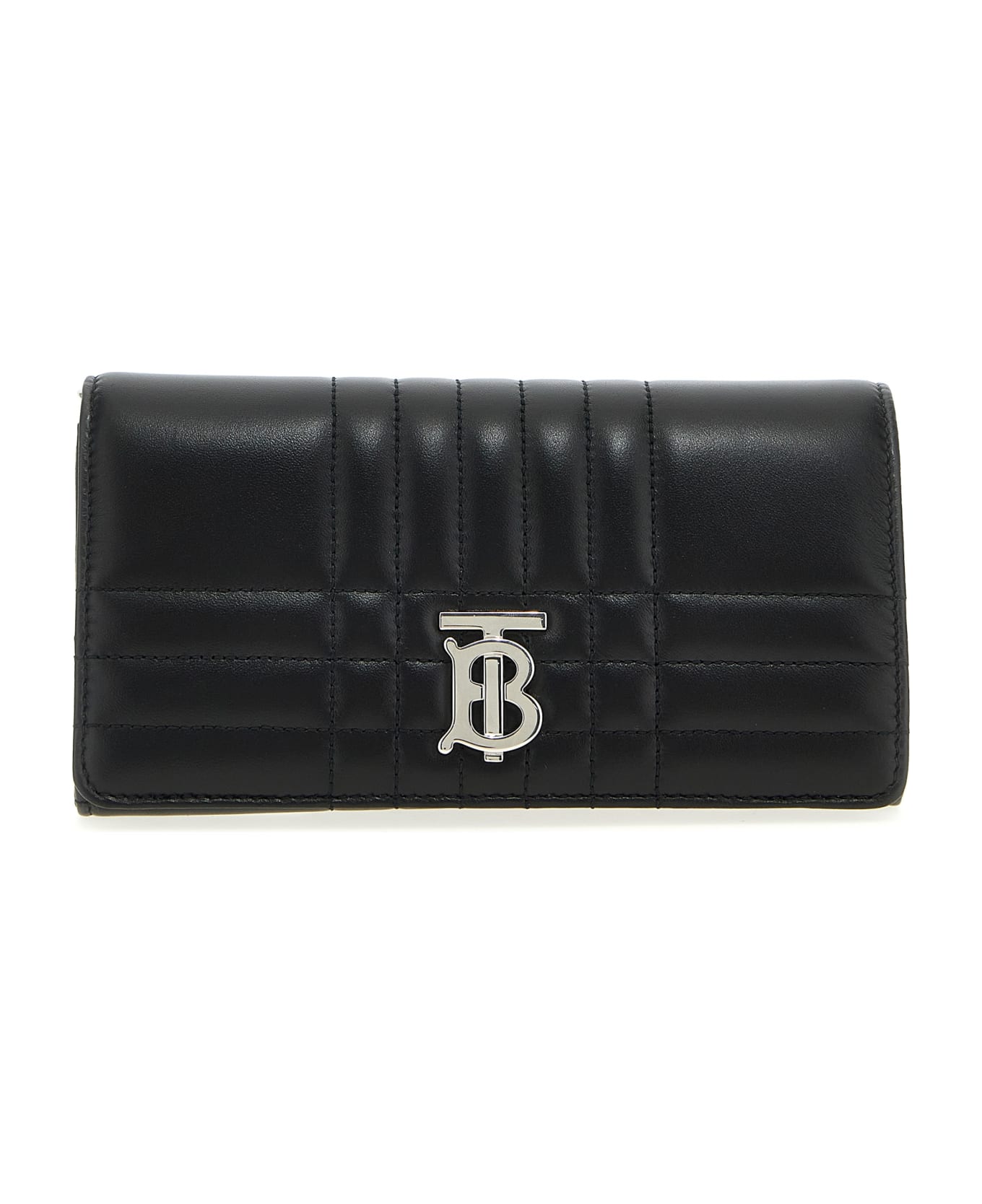 Lola quilted leather wallet, with TB monogram appliqué, magnetic closure, and removable chain shoulder strap. Composition: 100% leather