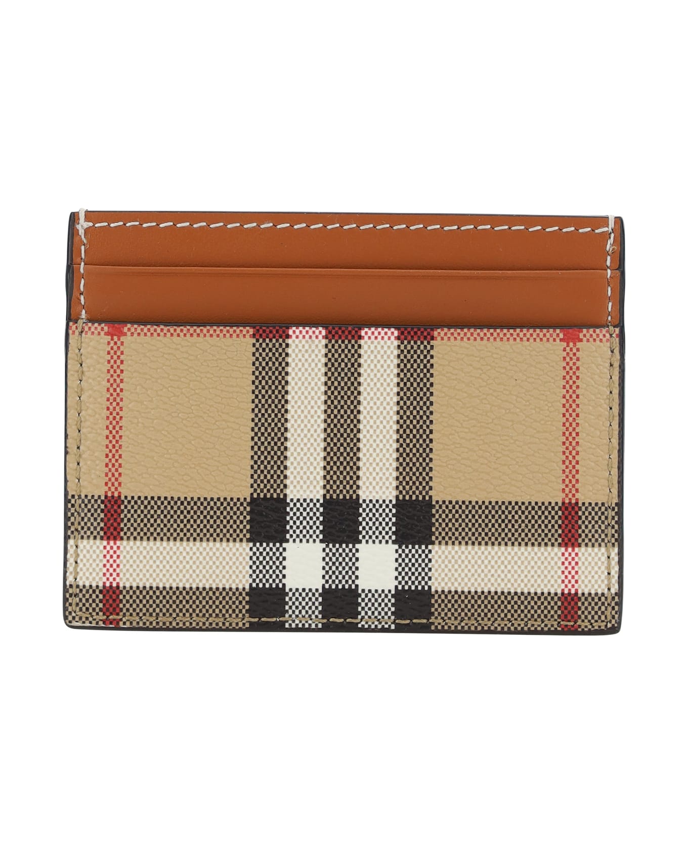 Sandon card holder by burberry, card slots on front and back, iconic all-over brand archival check pattern, contrasting topstitching. Composition: 14% % Cotton, 17% % Polyester, 69% % Polyurethane