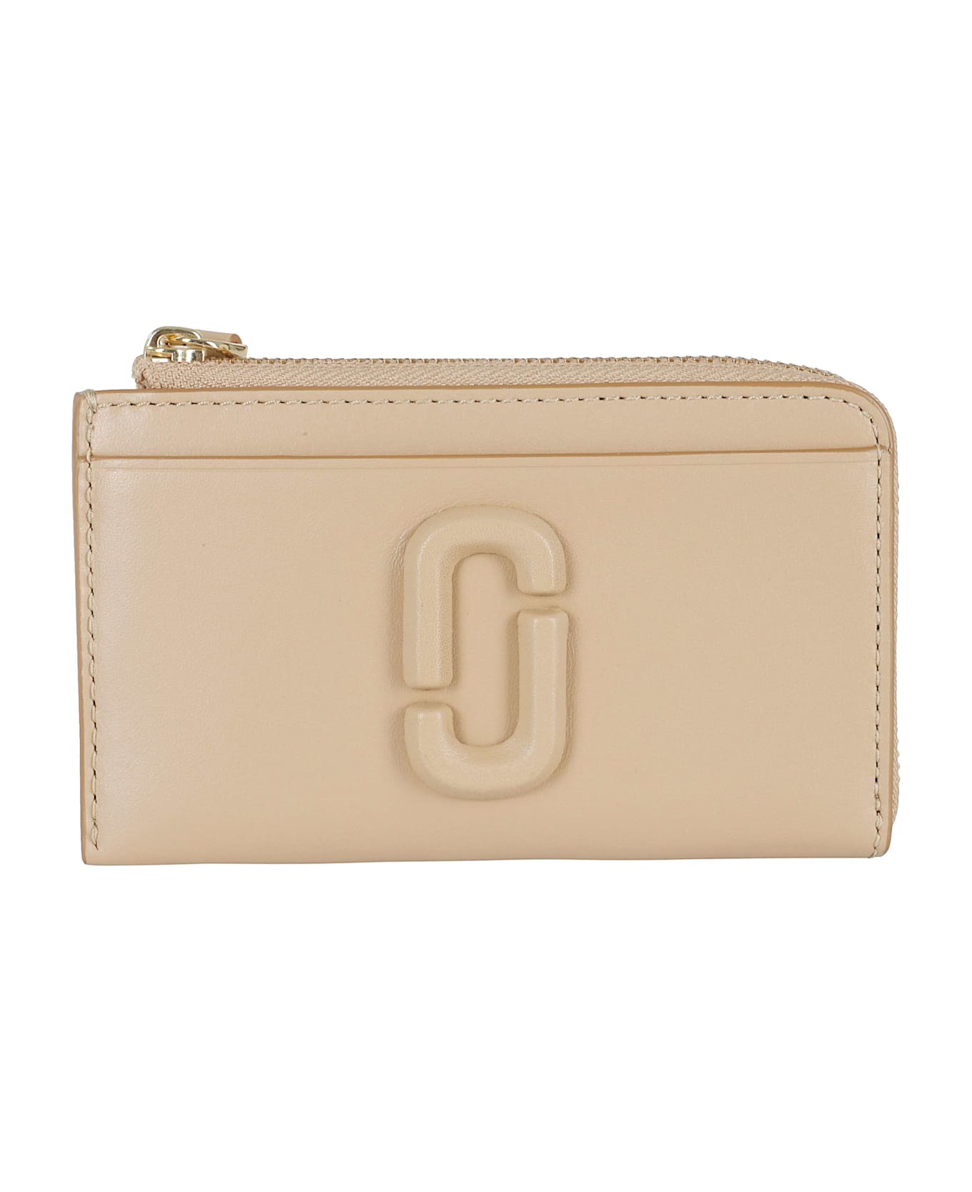 The Top Zip Wallet - Marc Jacobs - camel color - top zip closure - 4 card slots - 1 front pocket - embossed logo - internal key hook - dimensions: h 8cm w 13cm p 2cm