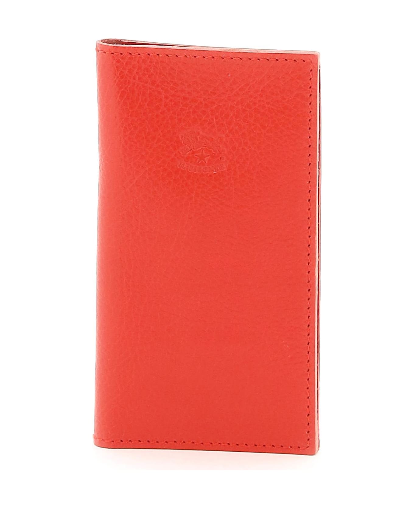 Leather credit cardholder by Il Bisonte with two slip pockets and eight credit card slots. Engraved logo on front.