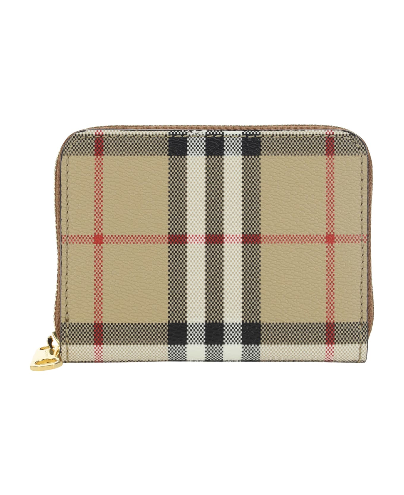 Wallet by burberry, iconic brand archival check pattern printed all-over, card slots inside, zip top closure, iconic brand monogram printed on the inside. Composition: 12% % Cotton, 1% % Acrylic, 16% % Polyester, 71% % Polyurethane