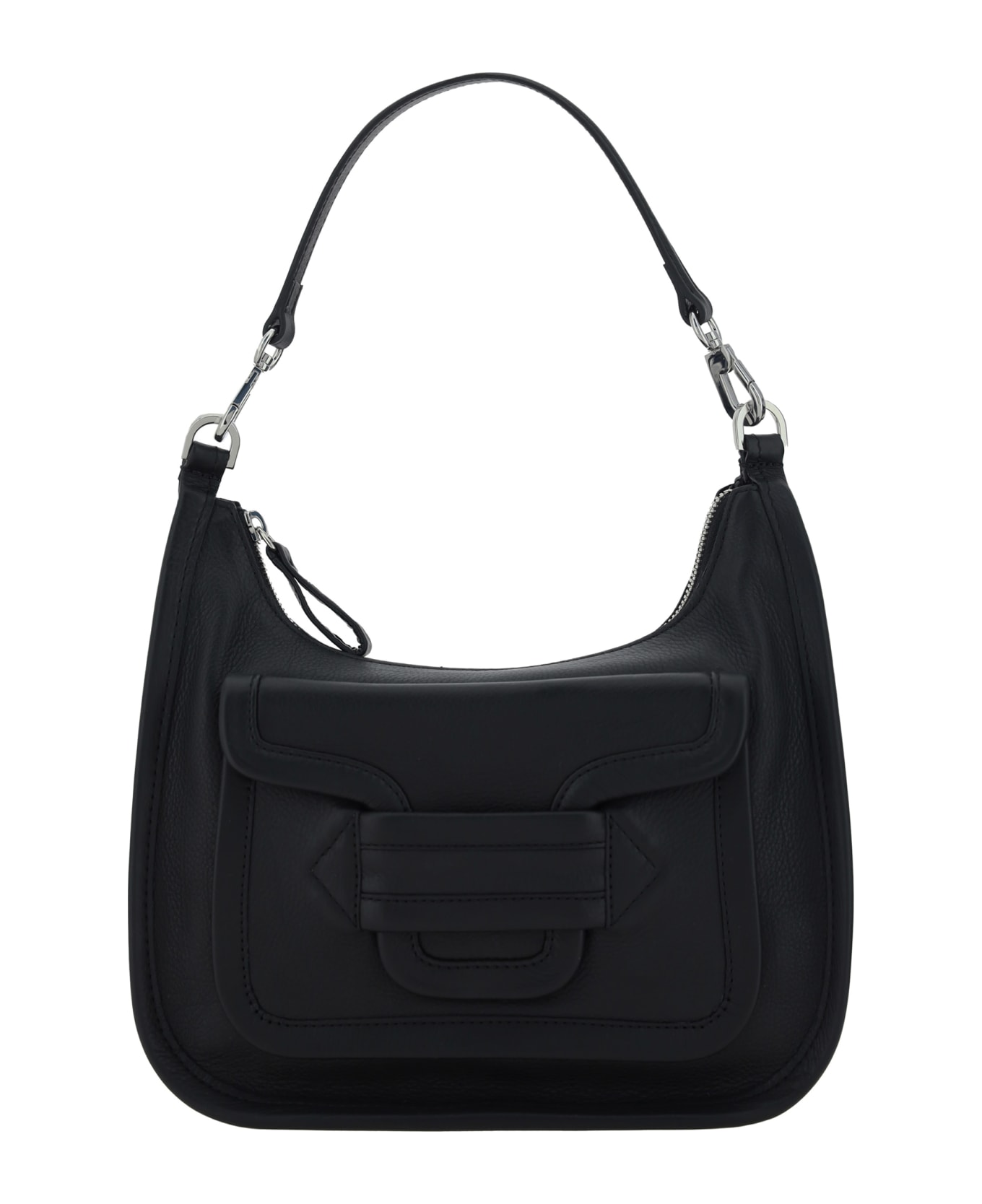 Calfskin alpha day miss shoulder bag by pierre hardy, removable top handle, front pocket with interlocking flap, adjustable and removable shoulder strap, front magnetic button closure, interior compartment with two slit pockets.