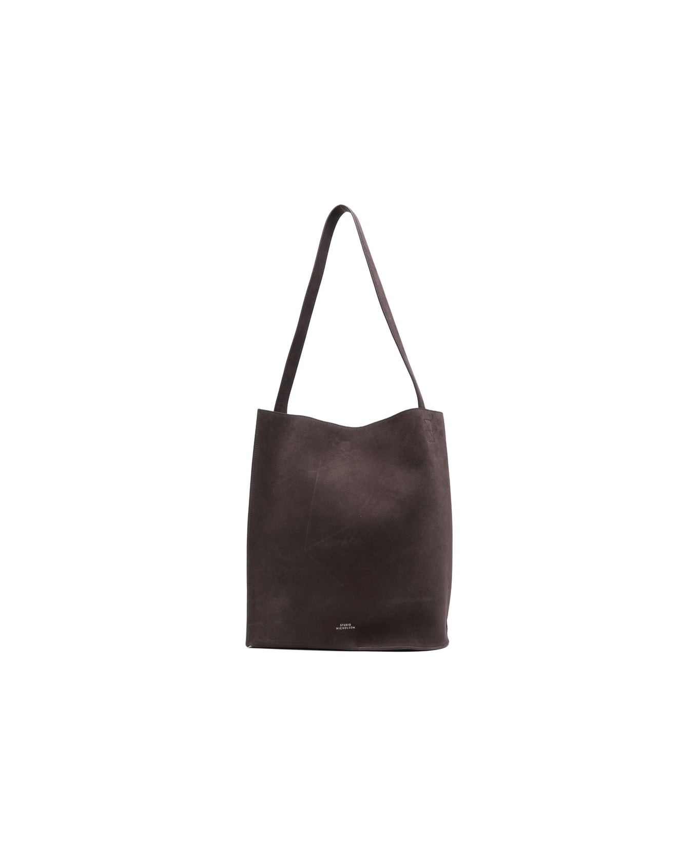 brown calf suede top handle internal pocket unstructured shape single compartment