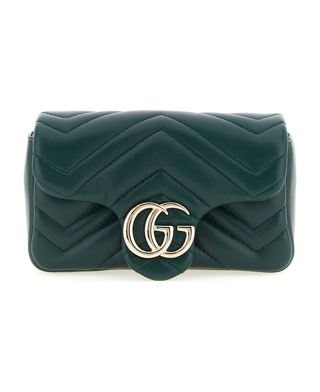 'GG Marmont' mini shoulder bag in chevron pattern matelassé nappa leather, tone-on-tone fabric lining, magnetic flap closure with front metal 'Doppia G' detail, removable chain shoulder strap. Composition: 100% lamb leather (Ovis aries)