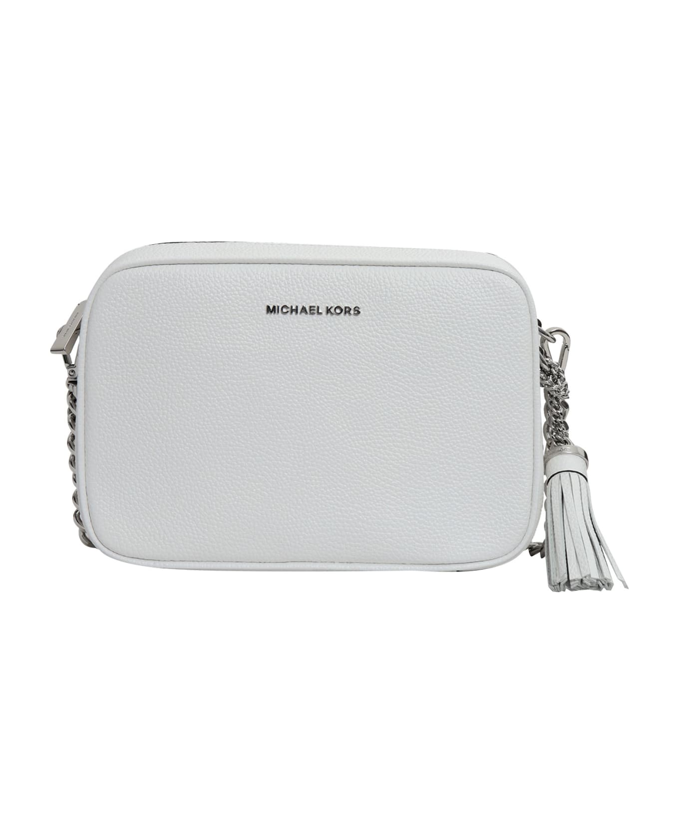 Textured leather bag, chain, oversized tassel, silver-tone metal details, inside back zip pocket, inside front welt pocket, zip closure