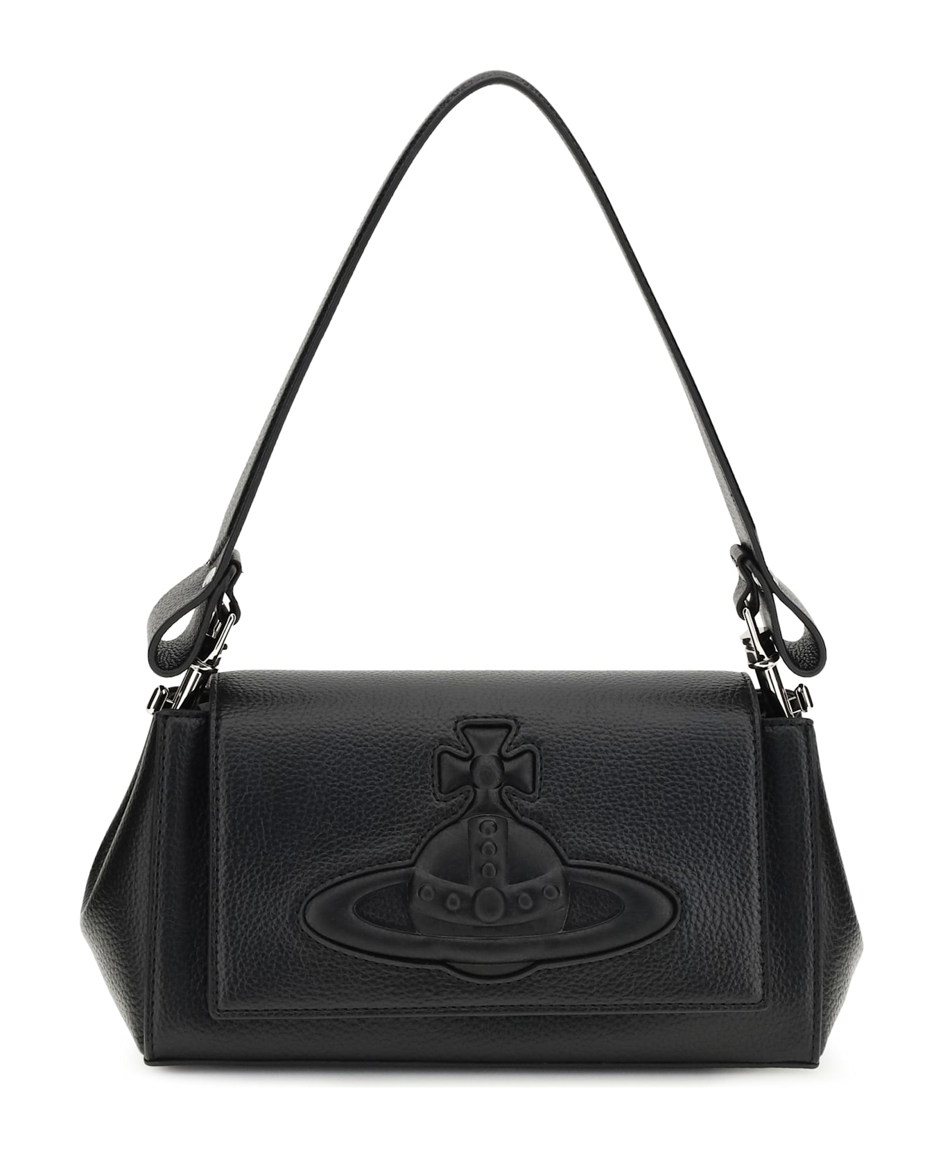 The hazel medium shoulder bag by vivienne westwood features a grainy texture and distinctive orbe detail. the elegant design is enhanced by a decorative chain and top handle for comfortable and versatile wear. perfect for a sophisticated and contemporary look. Composition: 100% % Polyurethane