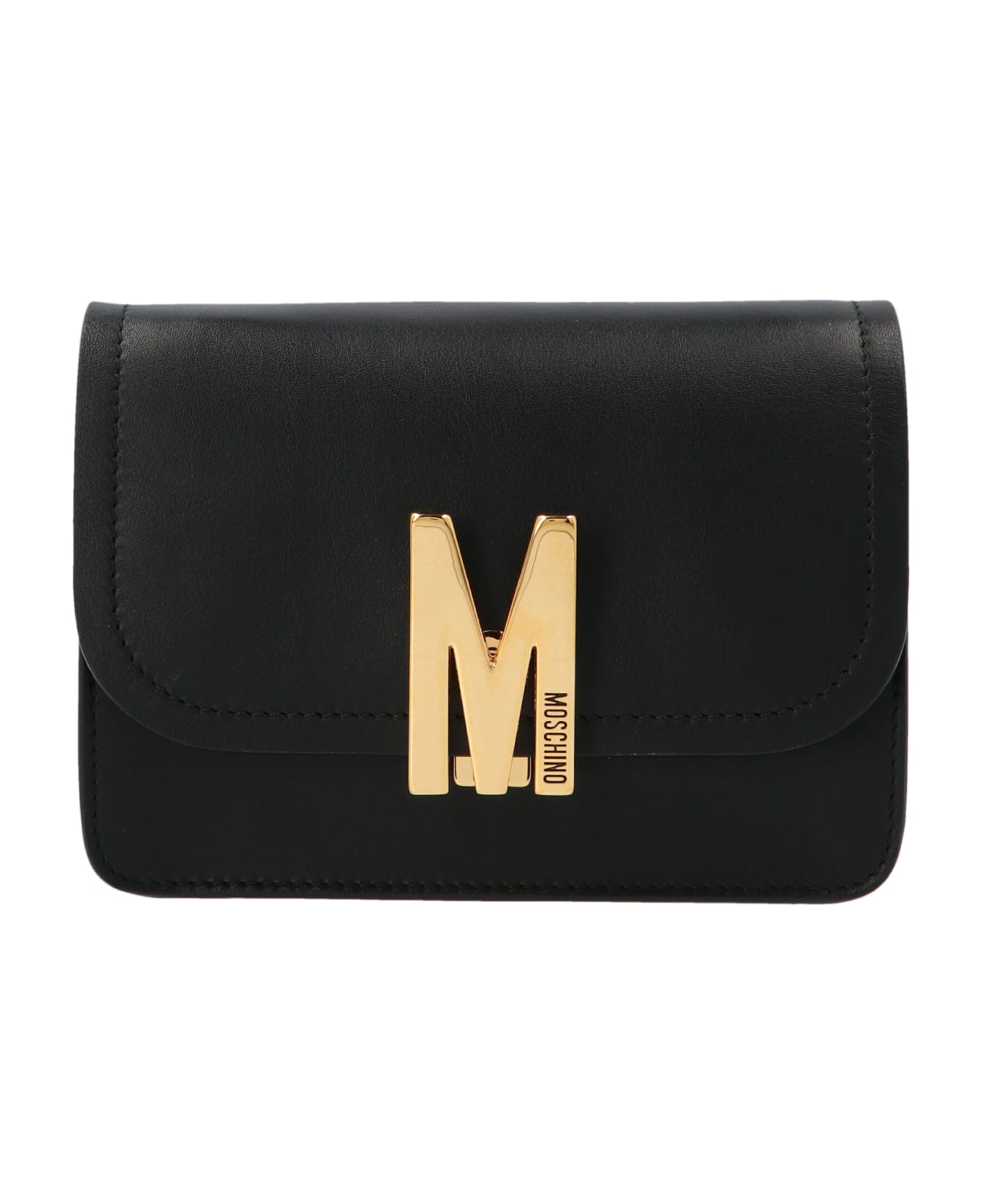 Moschino leather crossbody bag, embellished with gold logo hardware and an adjustable shoulder strap. Composition: 100% calfskin leather
