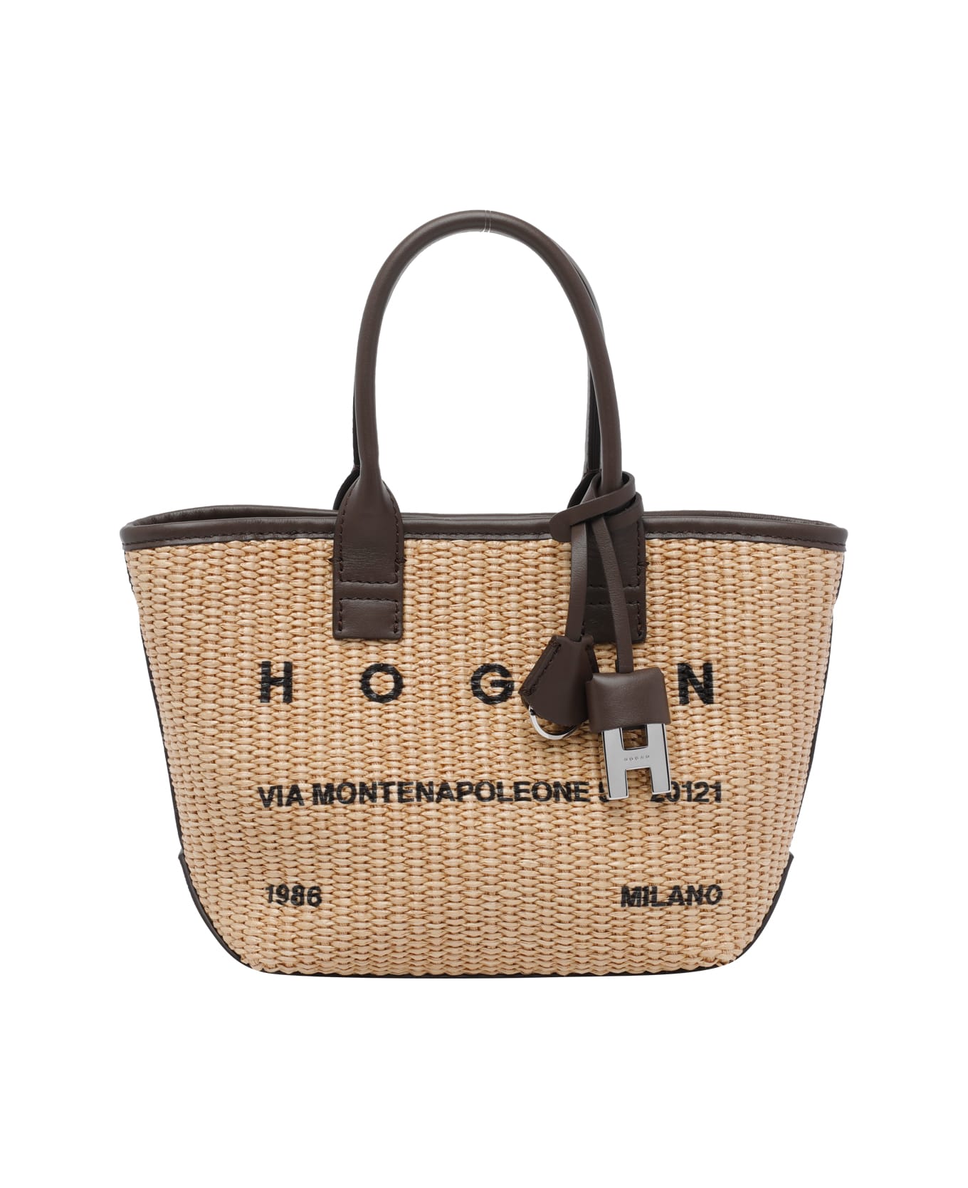 Hogan beige shoulder bag, magnetic closure, iner zip pocket, 2 handles, adjustable and removable shoulder strap, logo on the front Composition: 100% Straw Leather Trim
