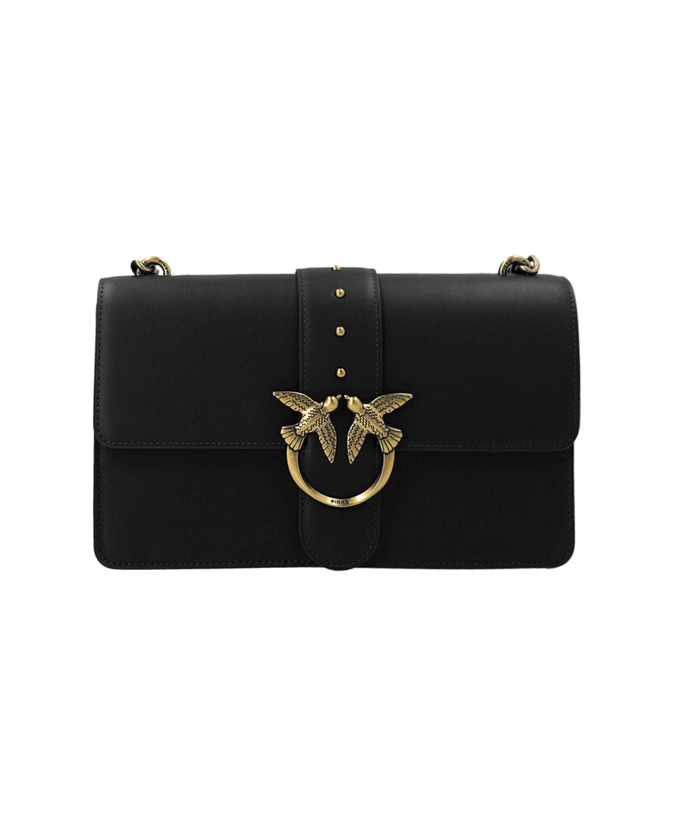 'Love One' leather crossbody bag with magnetic closure with front metal logo, removable leather and chain shoulder strap.