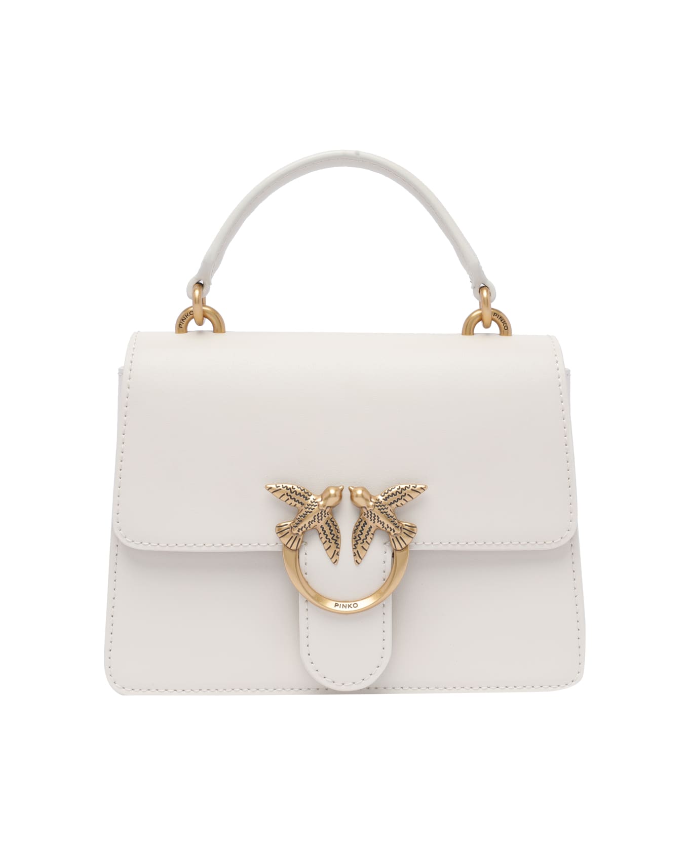 Pinko white Mini Love one handbag, magnetic closure, 1 handle, adaptable and removable strap, frontal golden