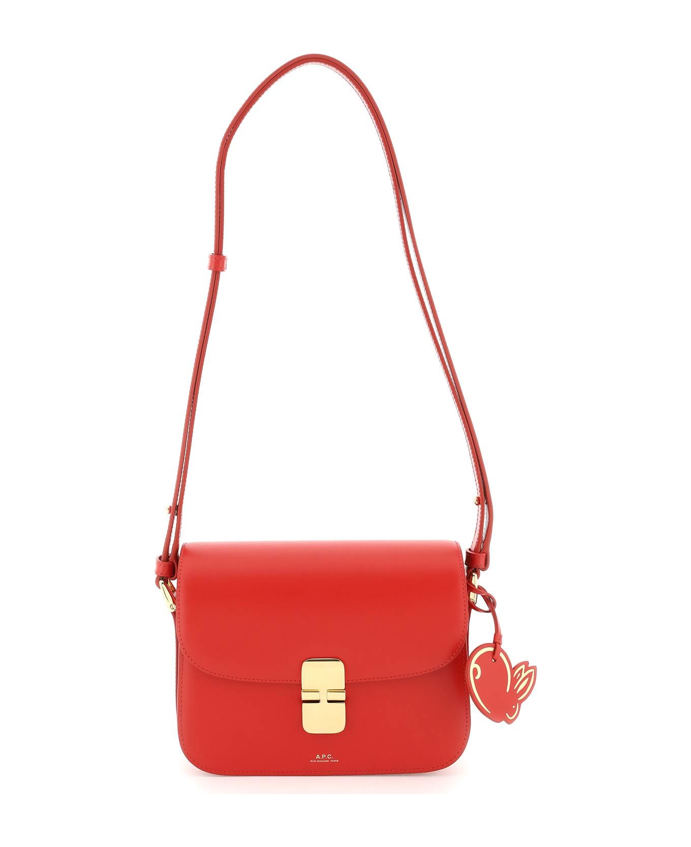 A. P. C. Grace Small bag in smooth leather featuring flap with metal joint closure, gold-tone logo print on front and adjustable shoulder strap. Cotton lining, two flat compartment and a middle gusseted compartment. Gold-finished metalware.