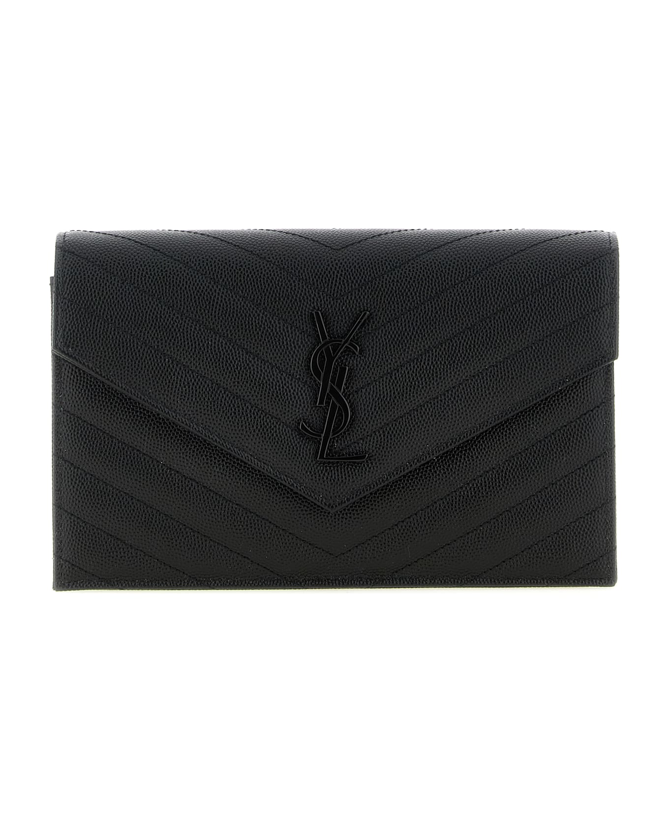 'Envelope' chevron quilted grain de poudre leather crossbody bag, flap closure with snap button and tonal brass 'Cassandre' logo applied on the front, envelope structure, grosgrain lining, chain shoulder strap with leather protection.