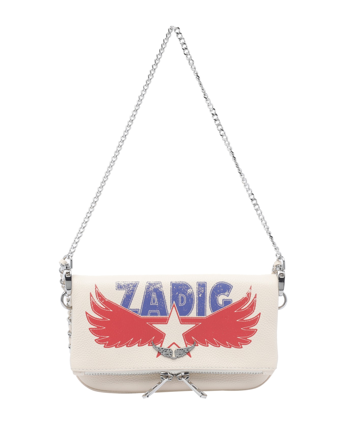 Zadig&Voltaire white Nano Rock America crossbody bag, magnetic closure, 2 external zipped pockets, removable chain strap, adaptable and removable strap Composition: 100% Calf Leather