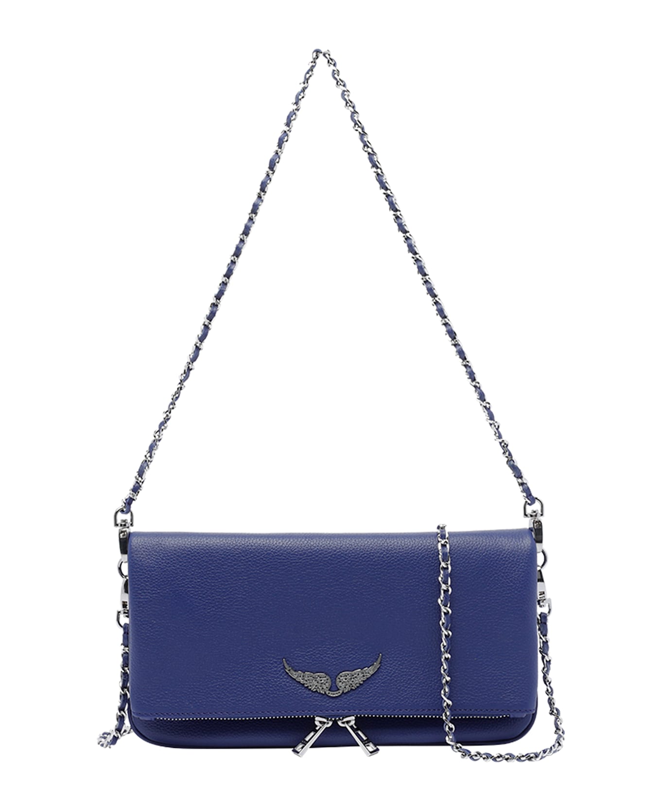 Zadig&Voltaire electric and silver Rock crossbody bag, magnetic closure, two external zip pockets, two inner open pocket, two removable strap, logo on front Composition: 100% Calf Leather