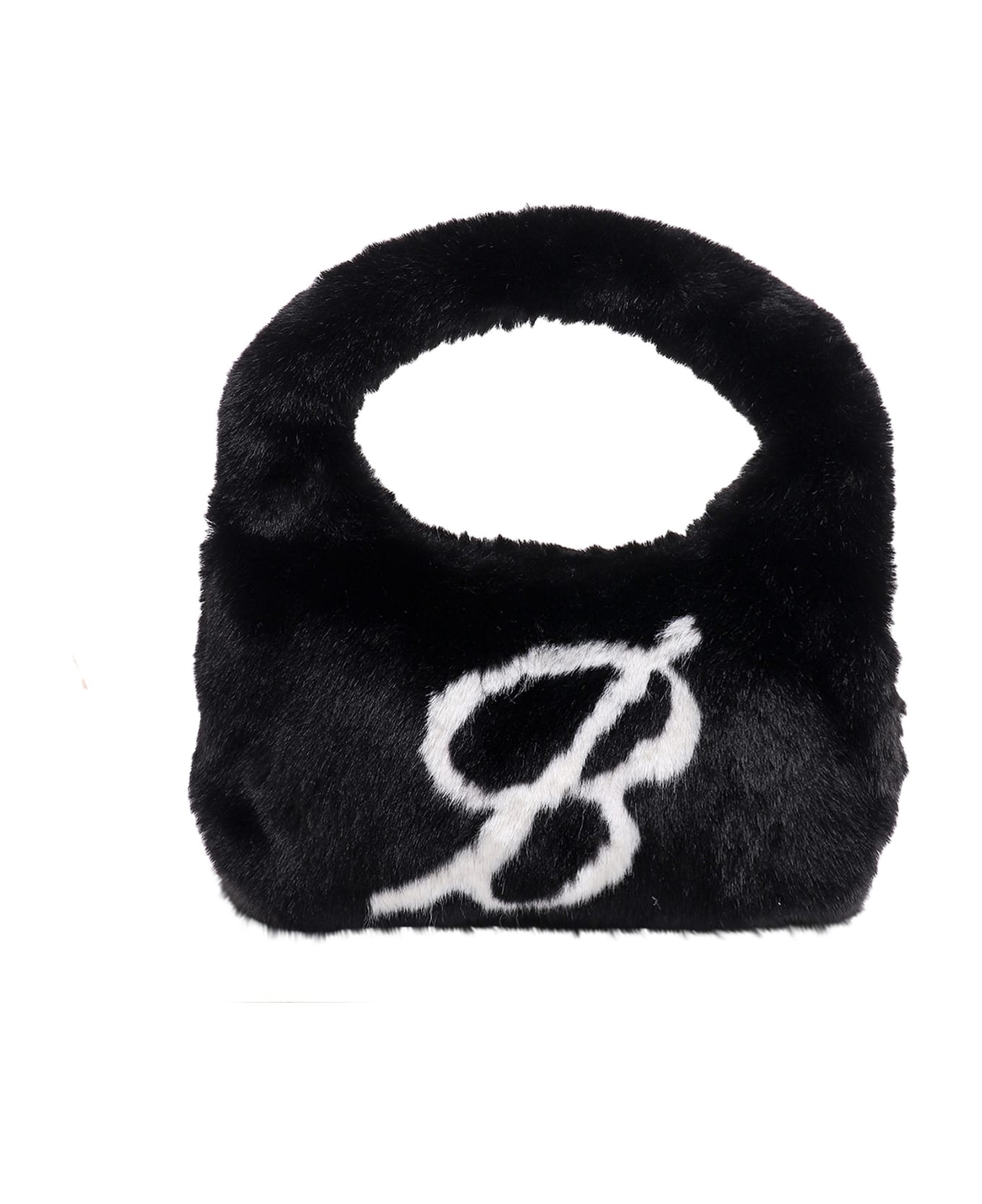 Faux fur shoulder bag with frontal monogram