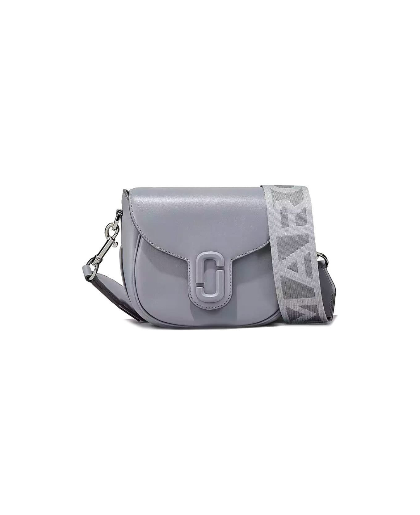 Grey The J Marc Small Saddle Grey Crossbody Bag from Marc Jacobs The J Marc Saddle bag by Marc Jacobs made of grey leather. Color matched logo on the front and silver metal details. Lined interior with slip pocket with zip, magnetic closure and adjustable and removable shoulder strap in logoed fabric. Measures 21x7x16 cm. -100% Cowskin